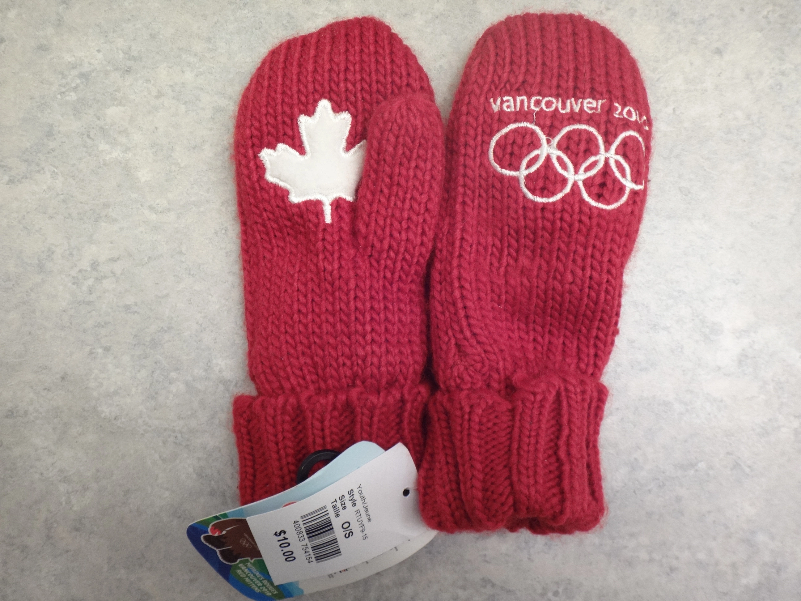 NEW with tag HBC Hudson's Bay Kids/Youth Vancouver 2010 Olympics red mittens.