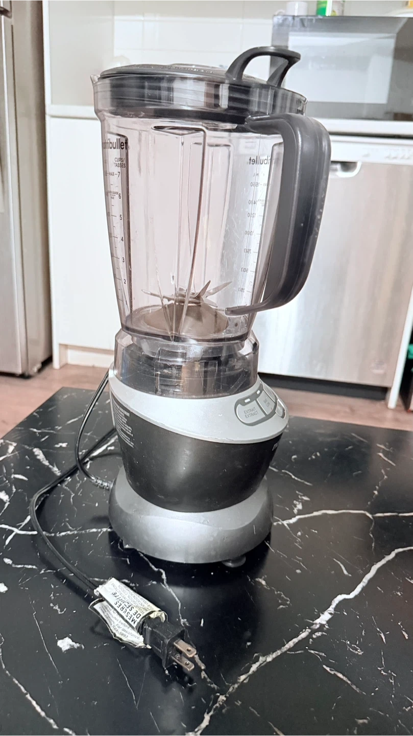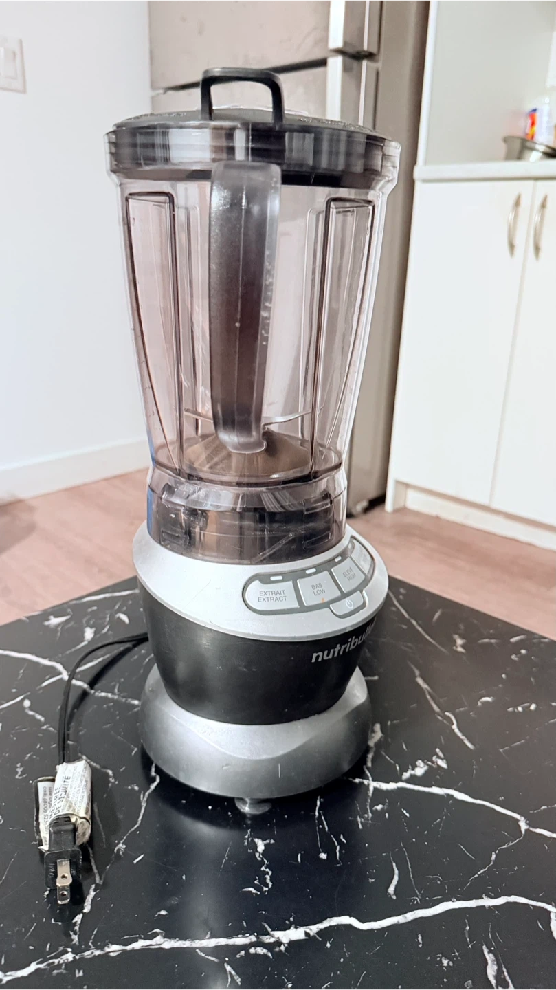 This NutriBullet blender is in good condition. It's made of durable plastic and has multiple speed settings for various needs. It's a great appliance for smoothies and other blended drinks!