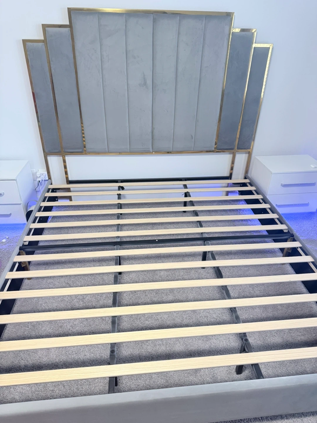 California King Velvet Bed Frame with Gold Accents