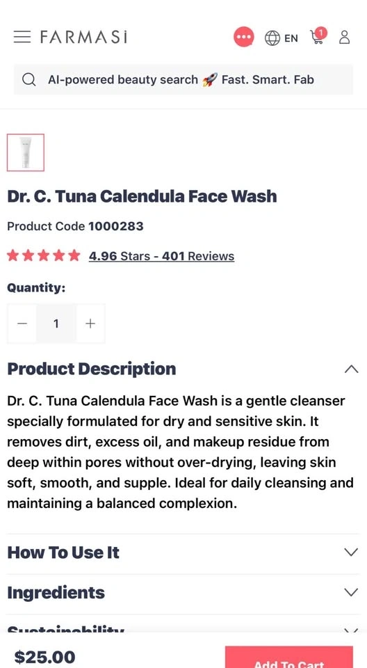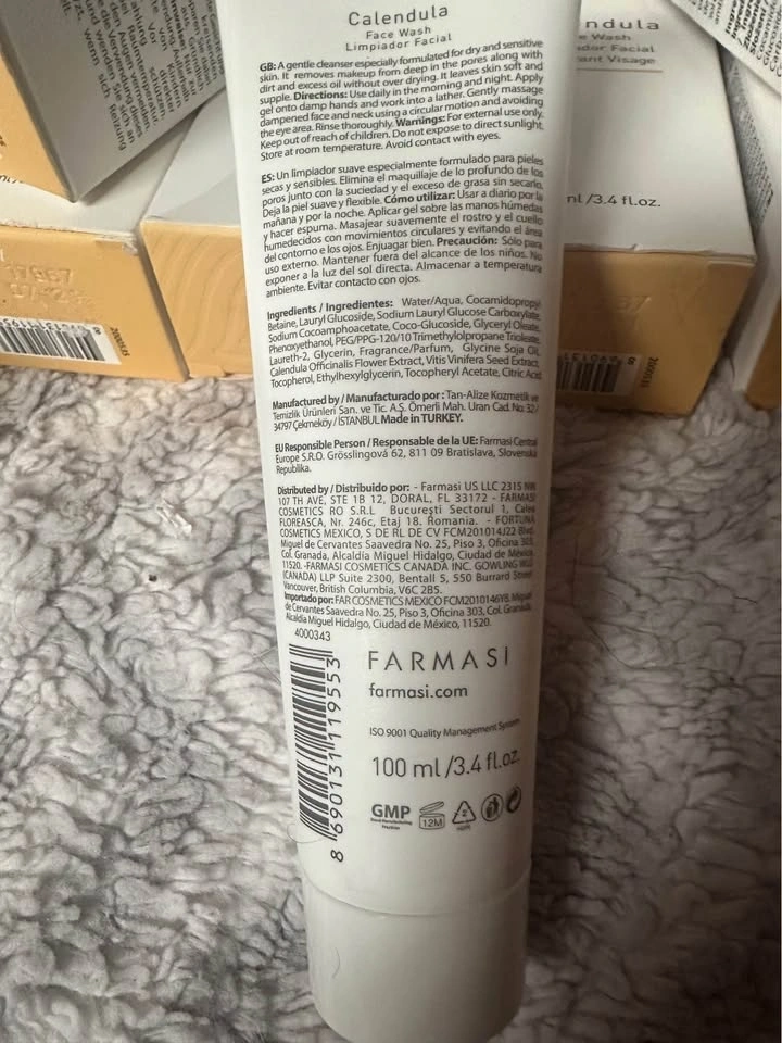 Farmasi Dr. C. Tuna Calendula Oil Face Wash, a gentle facial cleanser designed to soothe and hydrate dry and sensitive skin.