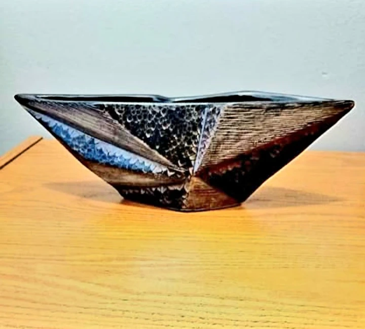 Vintage, Rare Ikebana textured ceramic boat vase with a unique design, Glazed, Leather Shape, watertight vase for Flowers Arrangement