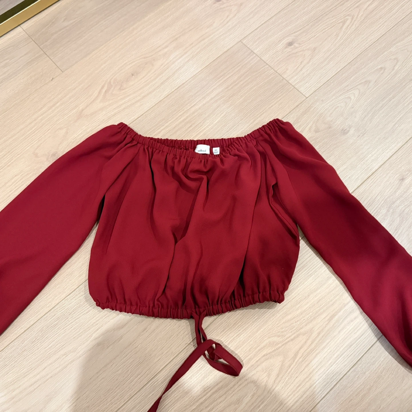 Aritzia Wilfred Burgundy Off-the-Shoulder Cropped Blouse