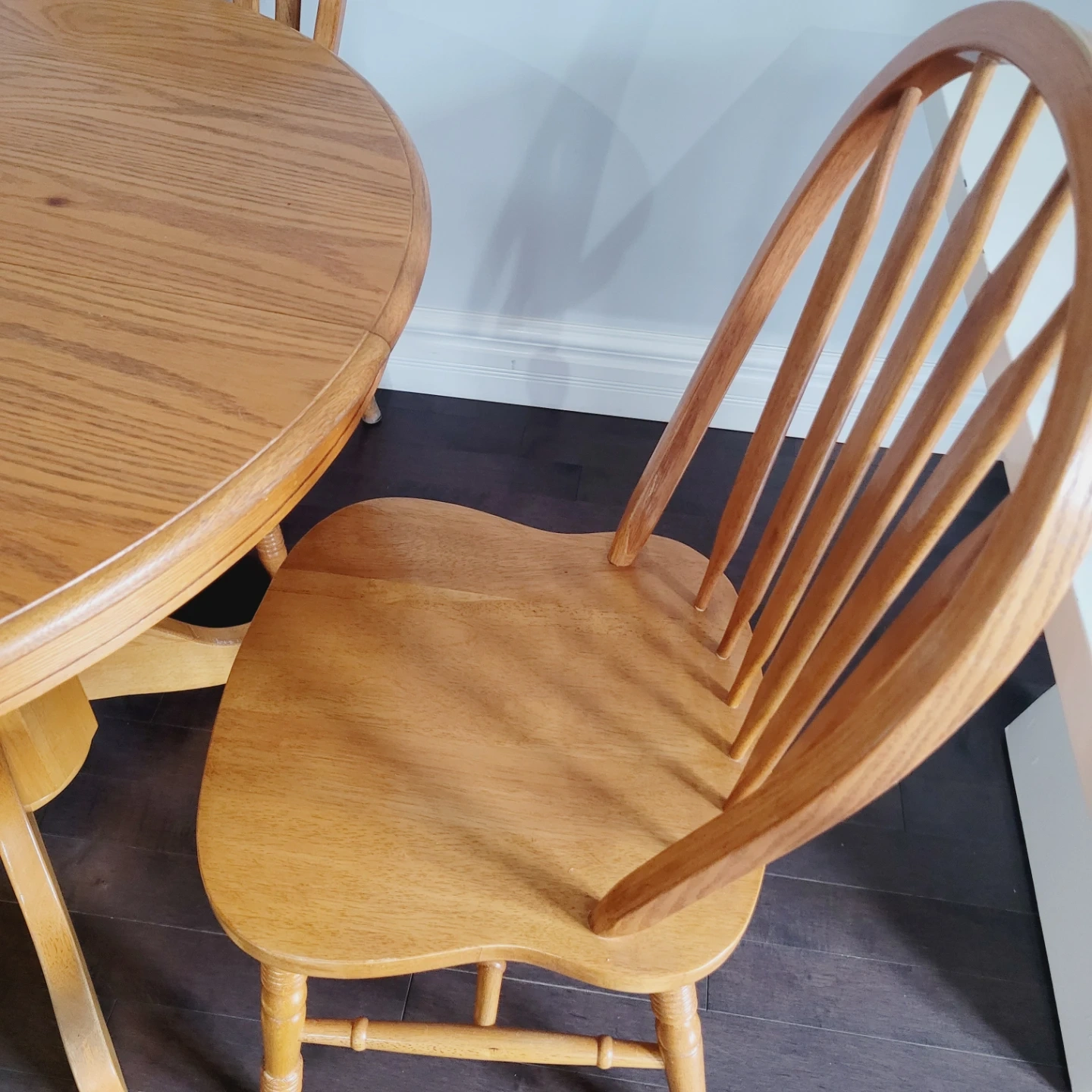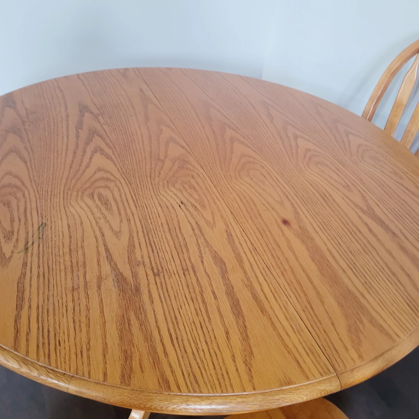 Round Oak Dining Table with 2 Chairs