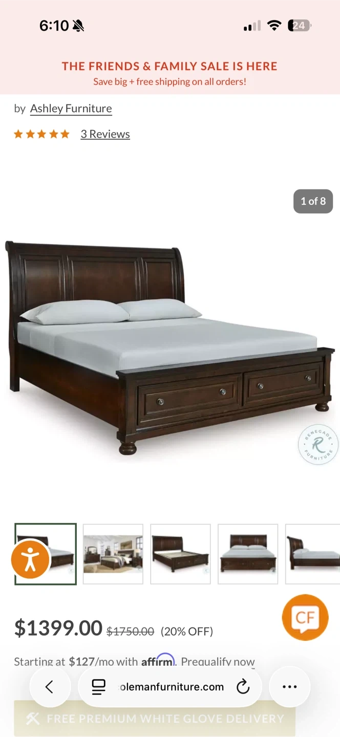 Renegade Furniture Sleigh Bed with Storage Drawers