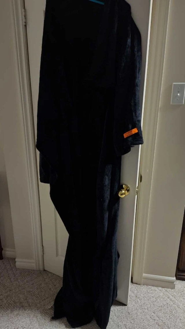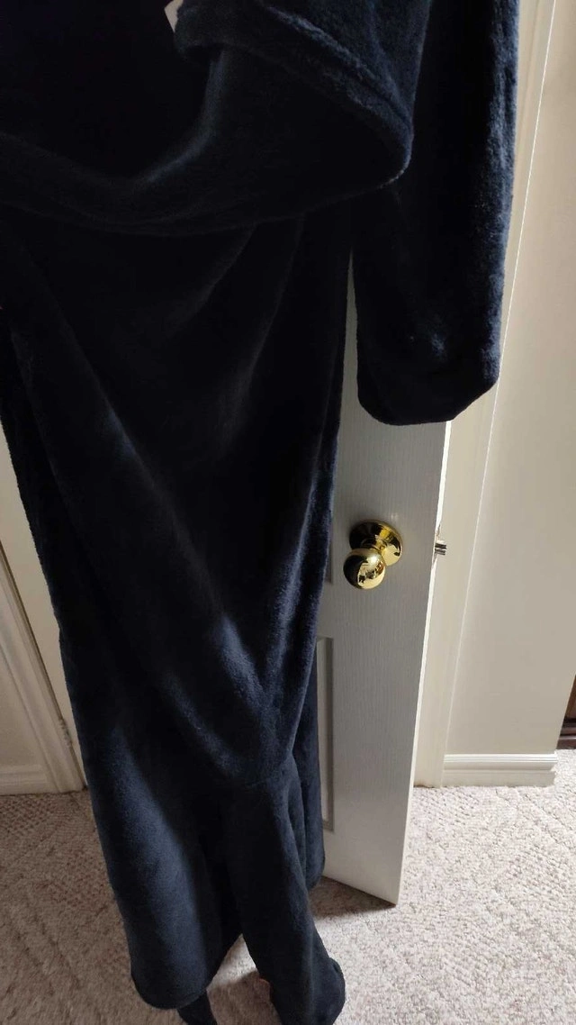 Snuggle up in this ultra-soft plush Sherpa blanket robe, perfect for lounging around the house on chilly evenings or mornings. It is used, but it is in excellent condition, ready to bring warmth and comfort to your daily routine. It has Velcro clasps and your legs can fit into the lower sleeves also if preferred. The robe is waiting for you to give it a new home. If the ad is up, the robe is still available. Located in the Britannia Rd and Ninth Line area.