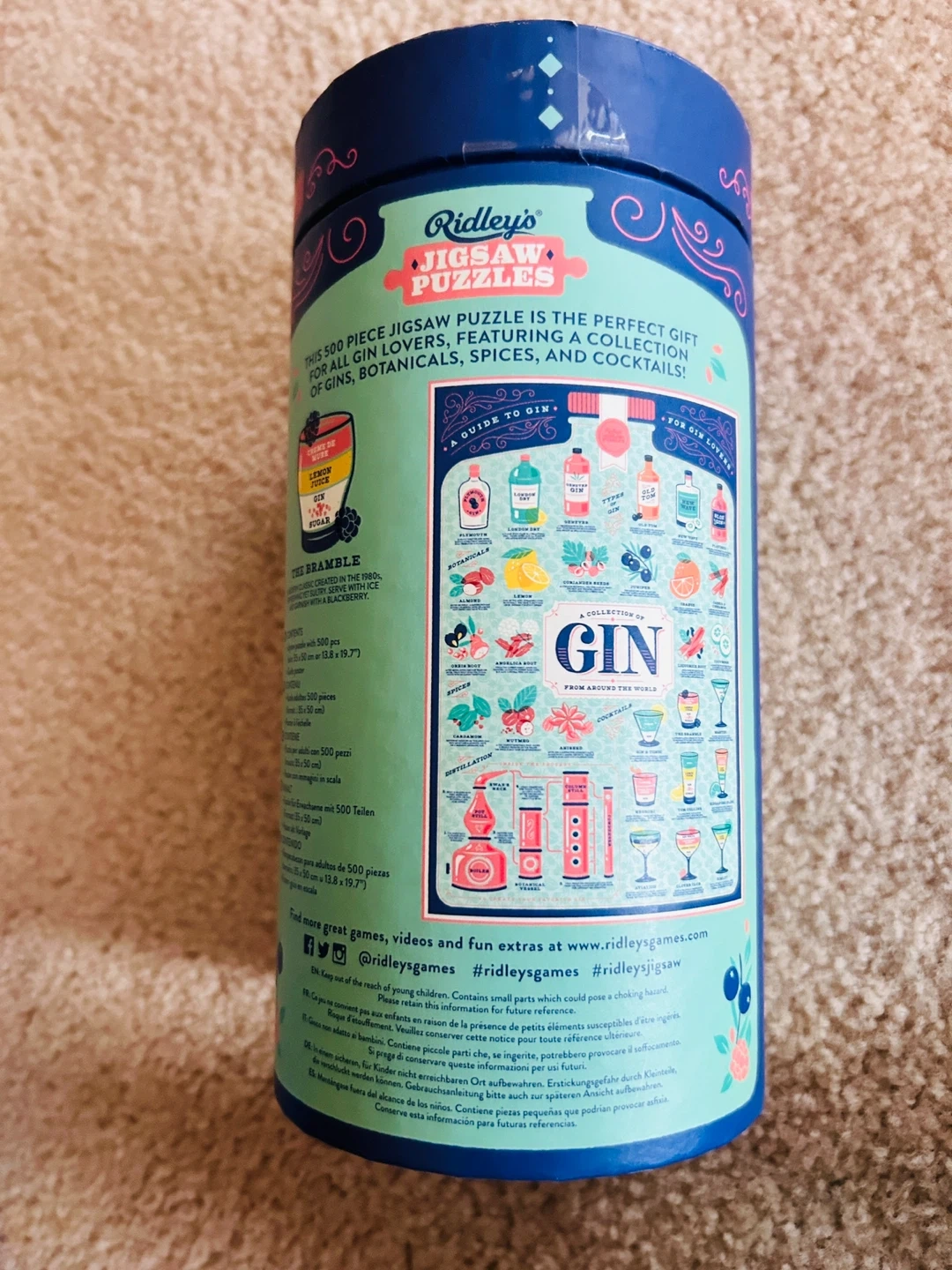 Ridley's 500-piece jigsaw puzzle for gin lovers, featuring cocktails, botanicals, spices, and garnishes. It's a fun way to spend some downtime. The completed puzzle measures 50cm x 35cm (19.7" x 13.8").