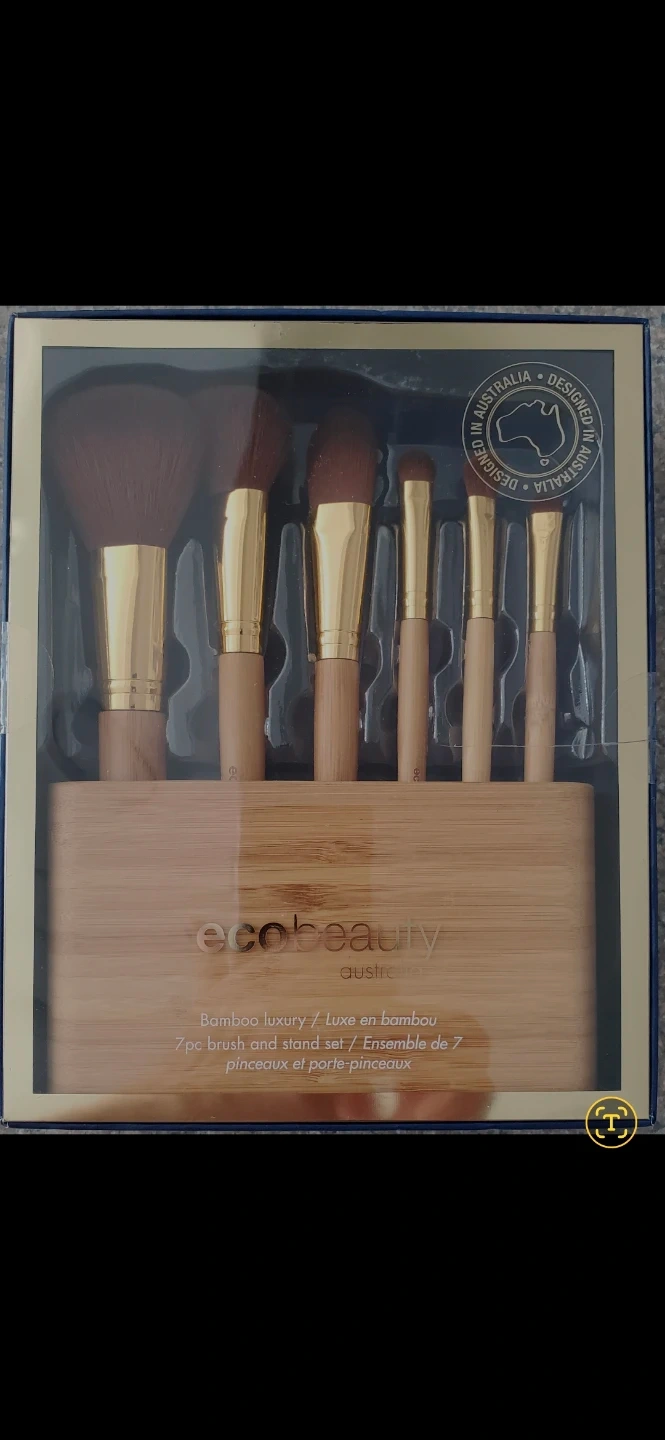 BNIB Never Used Sealed Original Packaging // I'm selling a beautiful and eco-friendly make-up brush set from the Australian brand Ecobeauty. This set includes 6 makeup brushes and a natural bamboo stand. Brushes are made with 100% cruelty-free synthetic soft bristles and bamboo handles with gold-toned ferrules. The stand keeps your brushes neatly stored. Note: This set is no longer available in retail stores so a unique find! Original price $50. Price is firm. Cash Only.