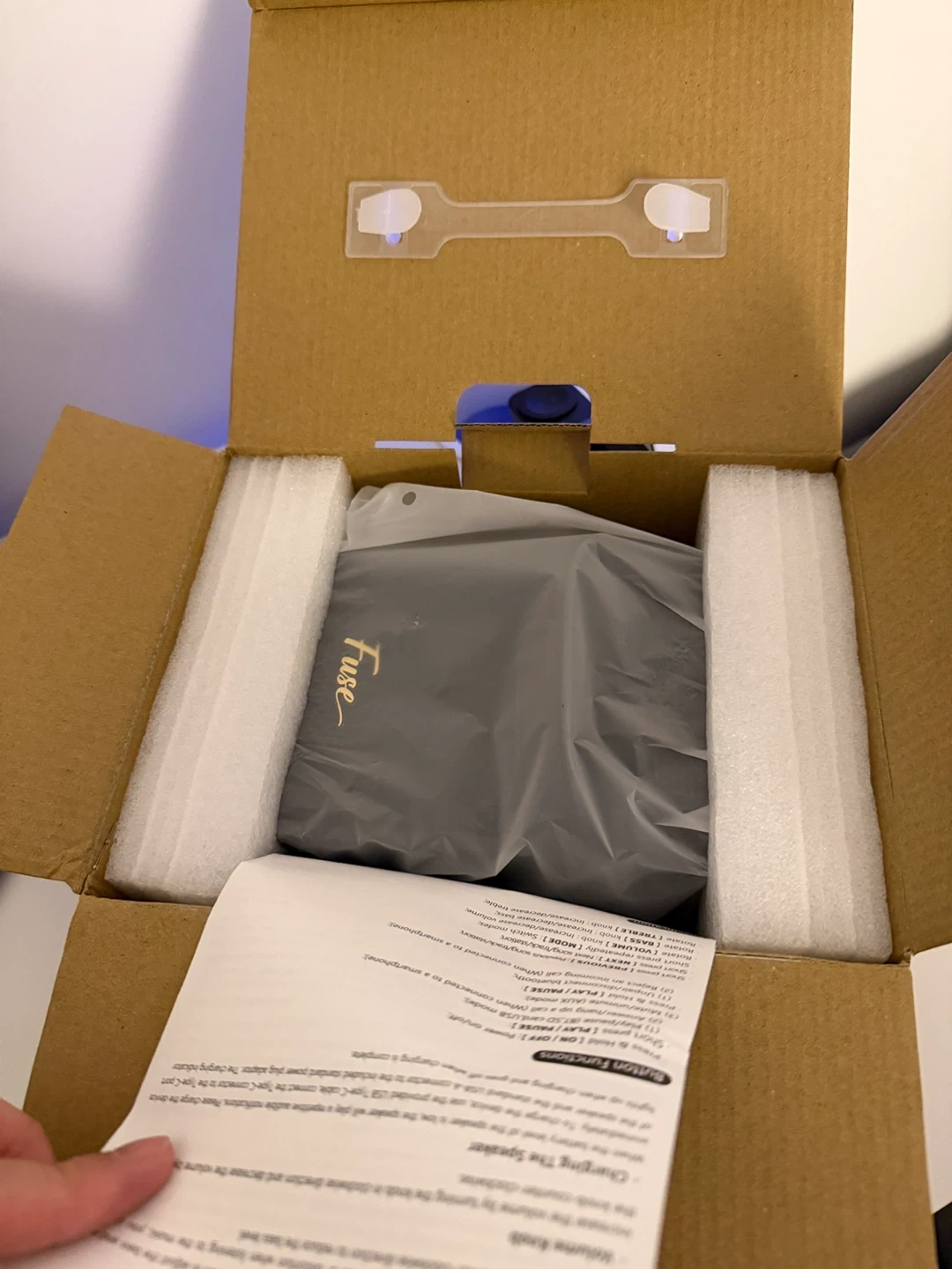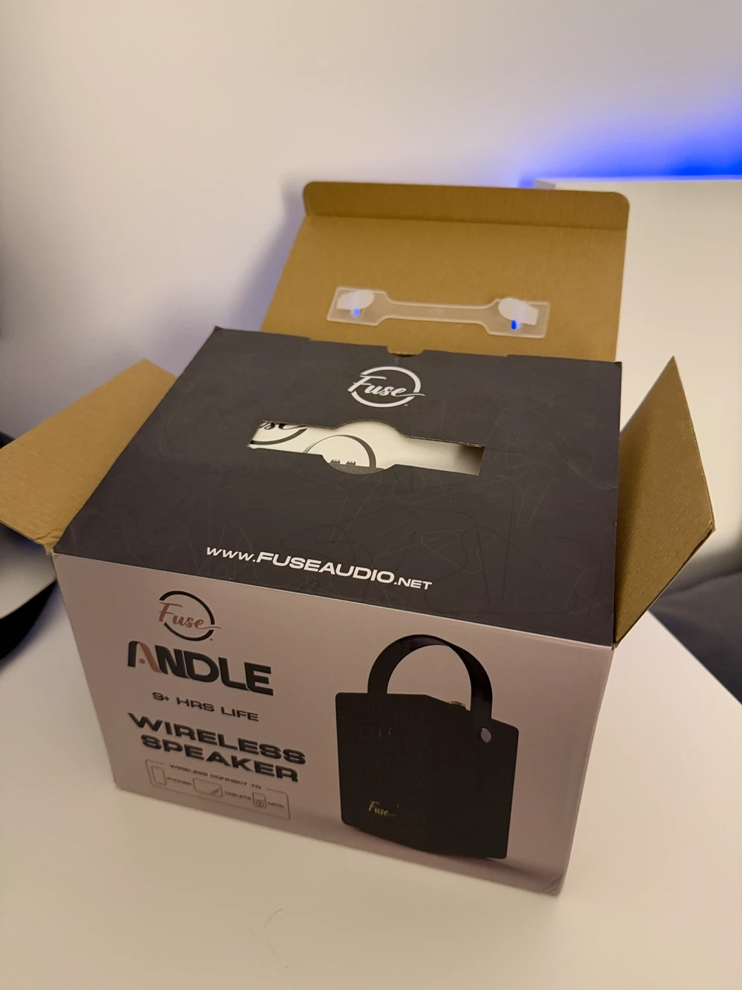 This is a Fuse ANDLE wireless Bluetooth speaker. It's a compact and portable speaker with a handle for easy carrying. Includes original box and packaging.