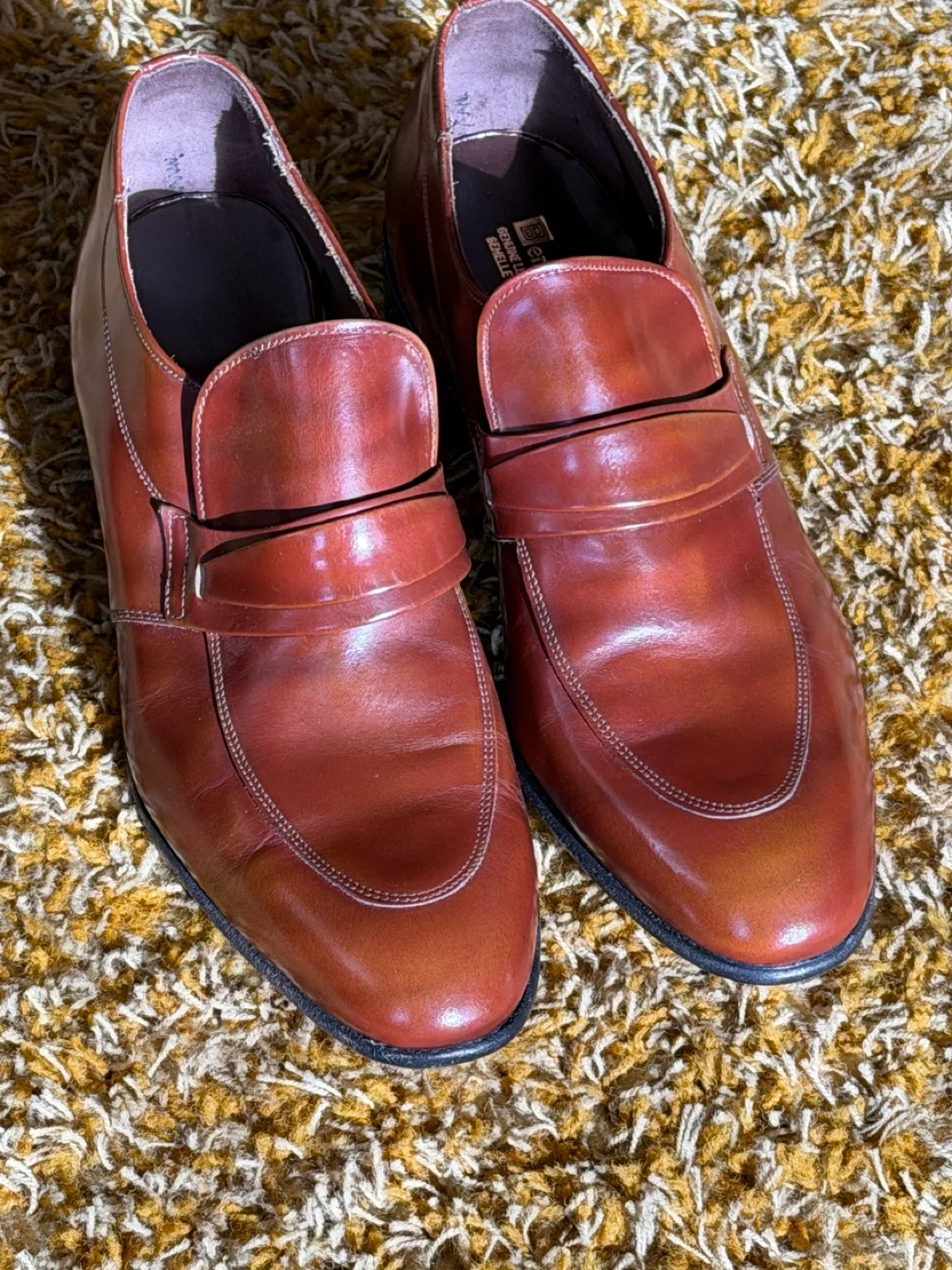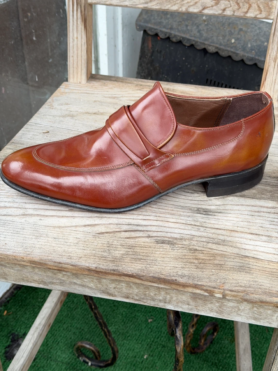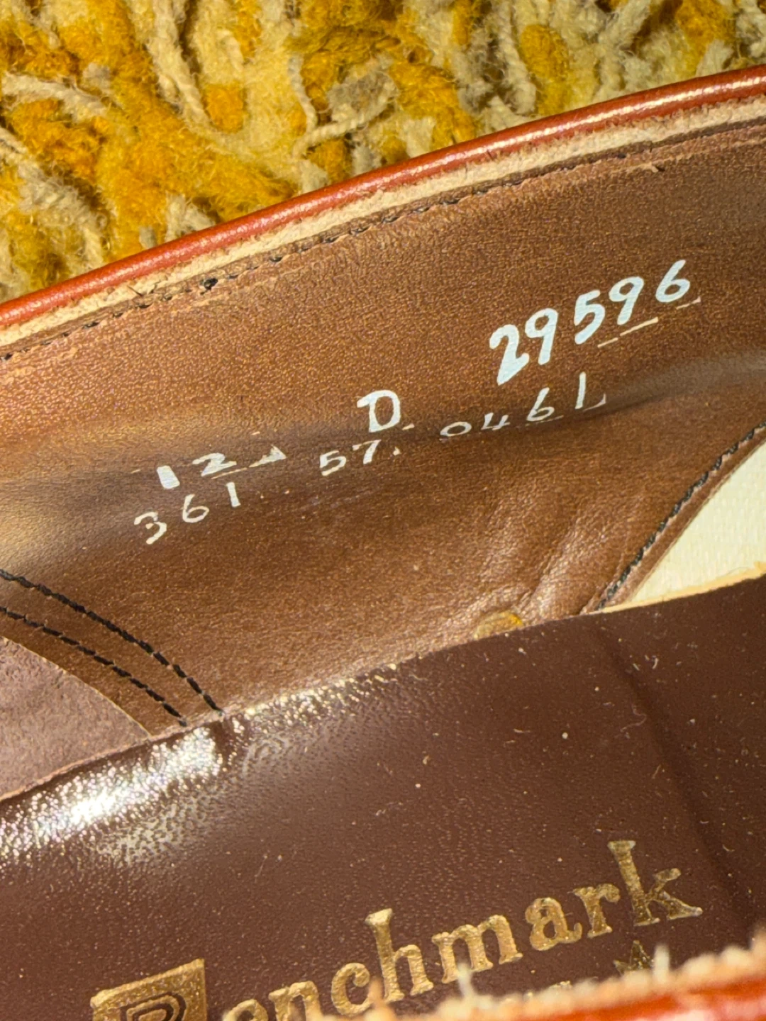 Men's Vintage leather loafer shoes from Canada by Benchmark. The writing on the inside says 12 D and very expensive. I have researched extensively and cannot find the exact shoe anywhere.