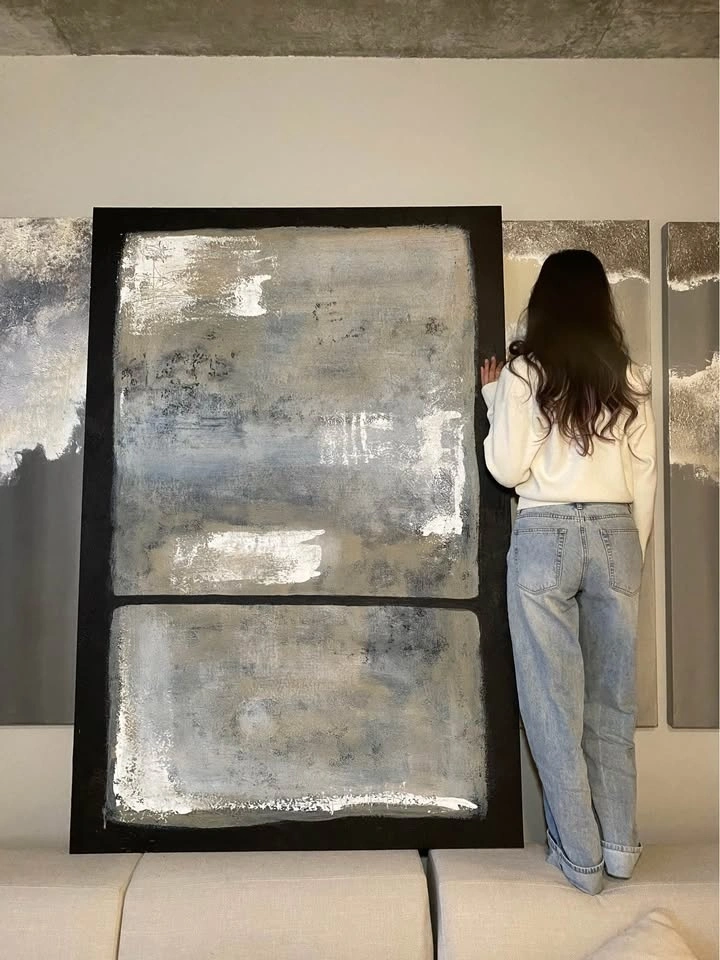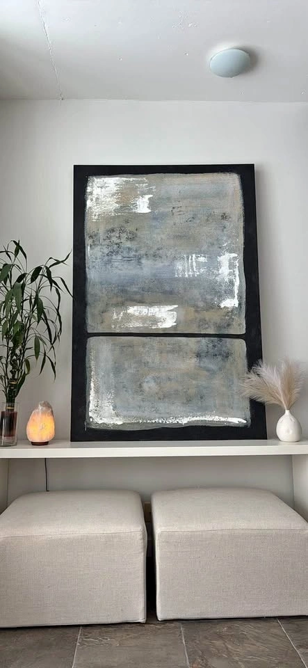 Oversized Original Painting, perfect for living room, entry way, foyer, bedroom, dining room, office decor. 4 feet by 6 feet (48” x 72”). Classic Modern, Abstract Painting. Black, White, Grey, Beige, Textured.