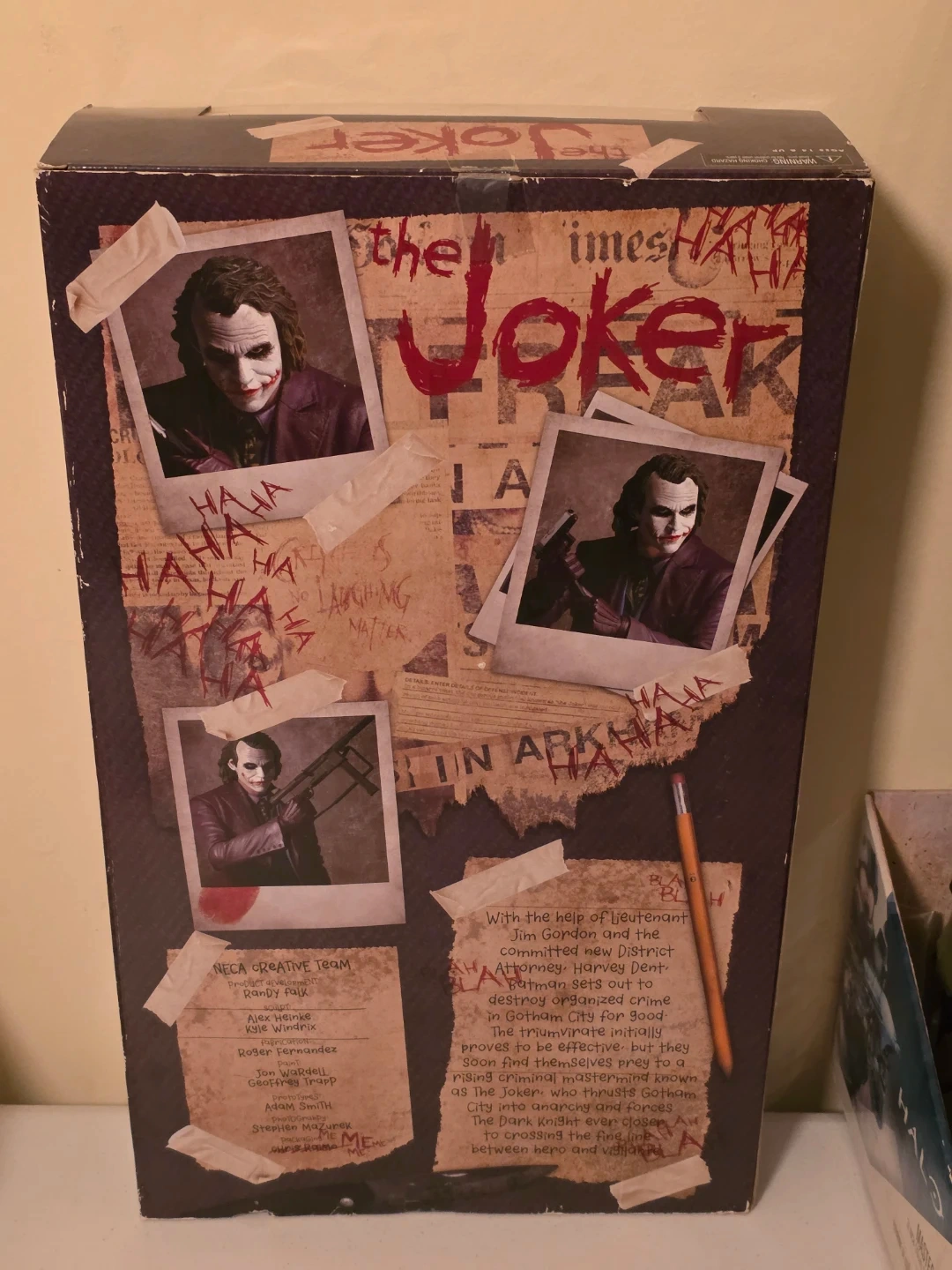 Selling a NECA The Joker action figure. The box is included and shows some wear and tear. Recommended for ages 14 and up.