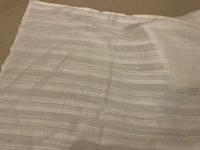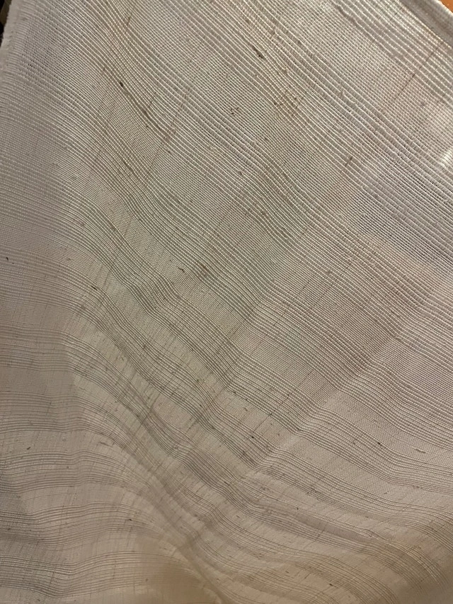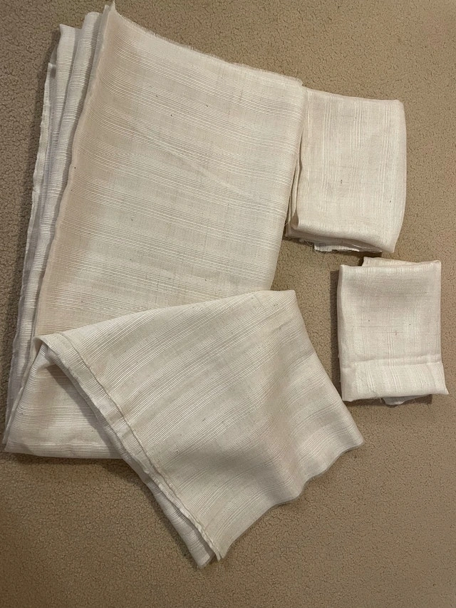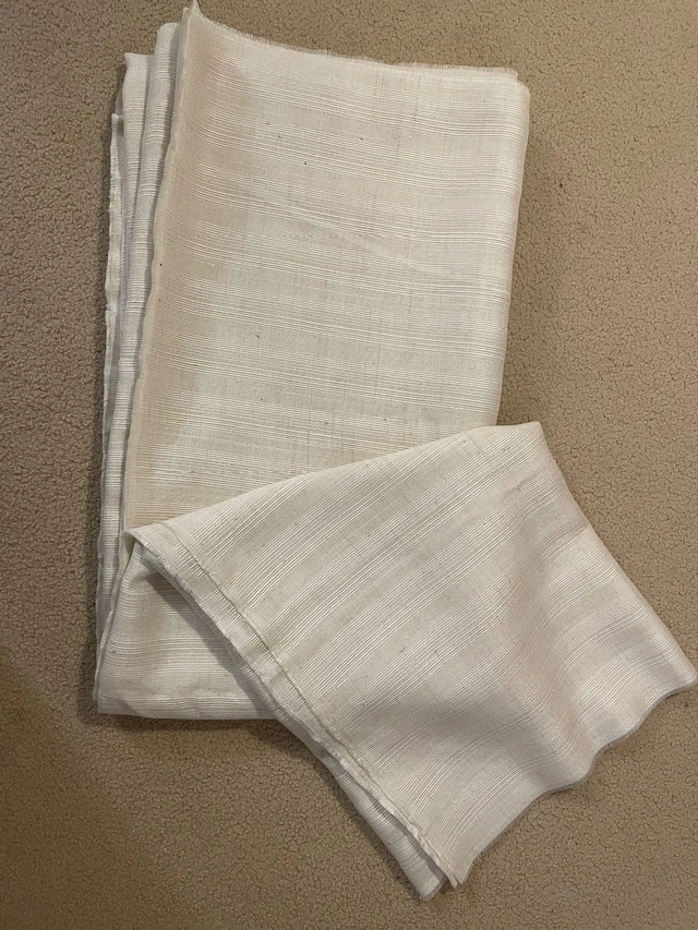 White, off-white cotton-blend fabric, great for making curtains, tablecloths, clothes, and more.