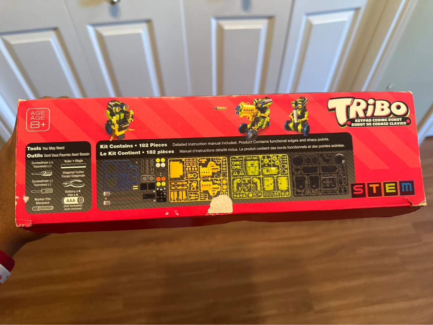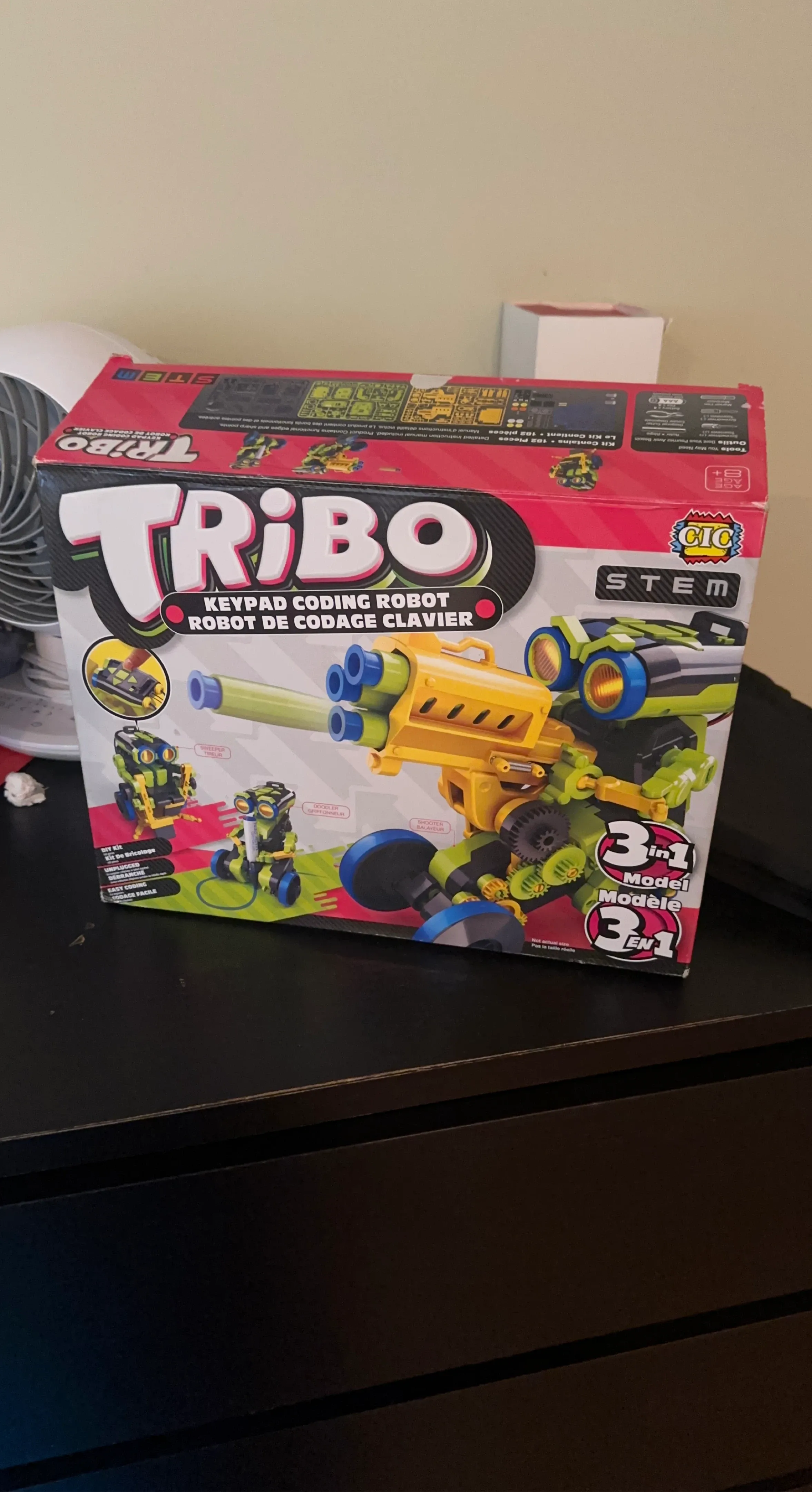 Build and code three different robots with this Tribo STEM kit. It contains 182 pieces and a detailed instruction manual. Recommended for ages 8 and up!