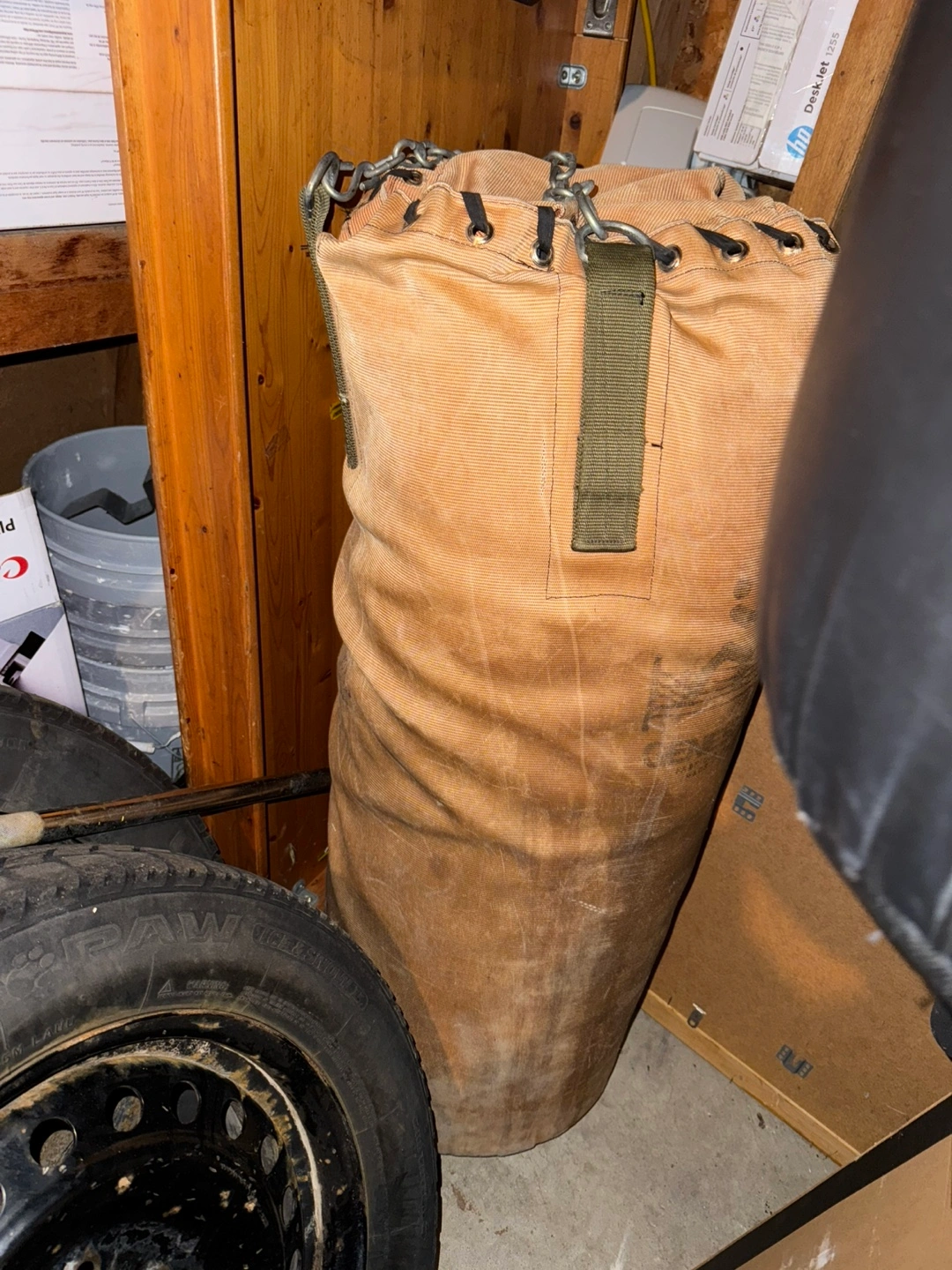 Buy & SellHeavy Duty Canvas Punching BagHeavy Duty Canvas Punching Bag$35Vintage heavy bag, canvas material. Chains included. Shows significant wear.WHERE TO MEETCheck LocationView MapSELLERManuelSullivan504 reviews1 chats·0 favorites·41 viewsSEND CHAT TO SELLERHi Manuel! I’m interested in your listing.Hi Manuel! I’m interested in your listing.Get the Karrot app to chatSign In to chat