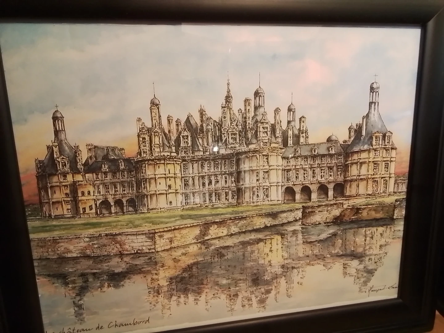 Framed Le Château de Chambord Signed 17.25x14.25"