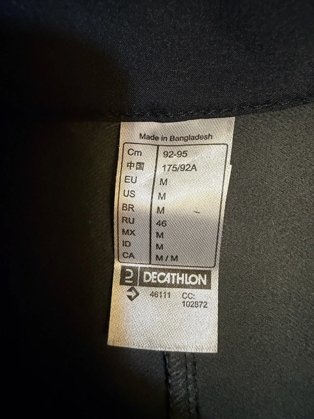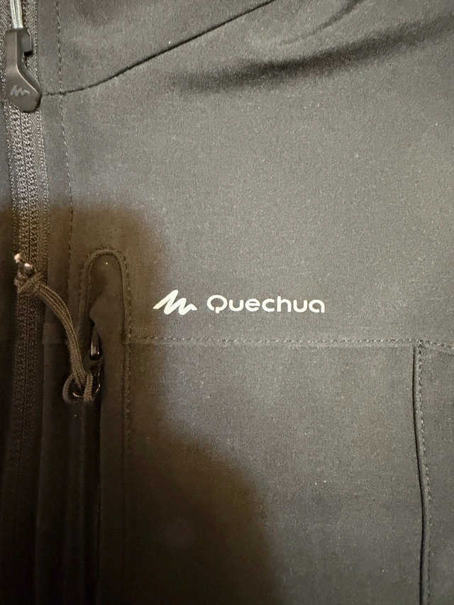 For sale: Quechua lined sport jacket for men, size Medium. It's in like-new condition, probably never seen a real mountain! Perfect for making your neighbors think you've been on an epic expedition. Technical details: Brand: Quechua. Size: Medium. Color: Black. Price: $10. Non-smoking home, but I do have a dog. If you have allergies, consider it comes with a free bonus of 'affectionate canine fibers'. If you see this ad, the jacket is still available. Pick up in H1W 0B9.