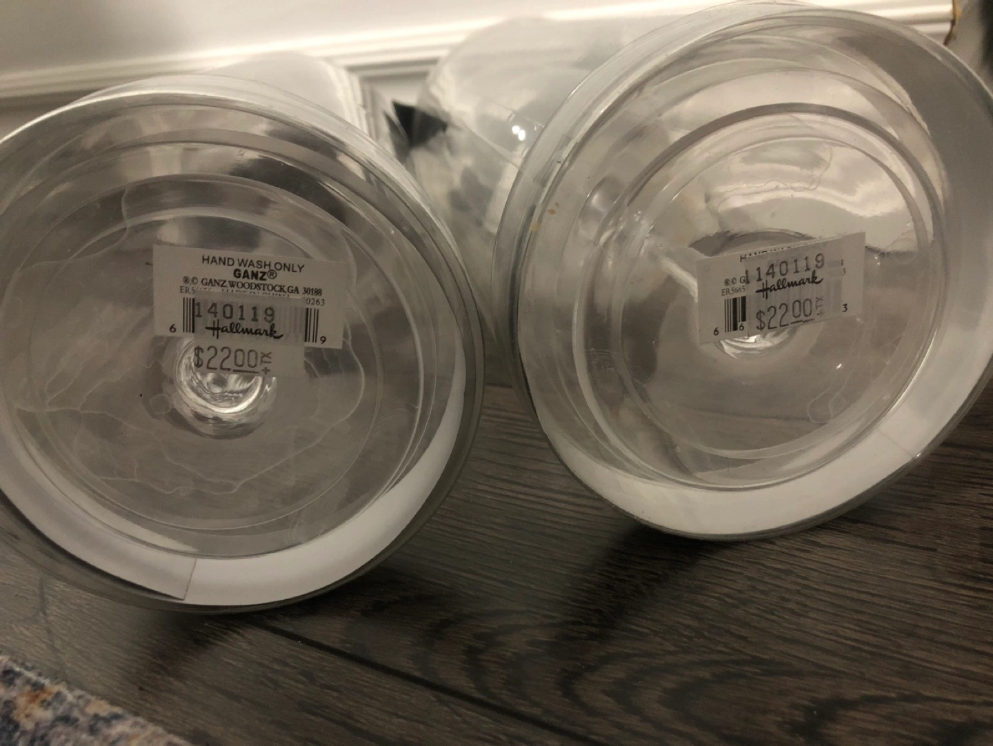 Set of two wine glasses. One says Mr. and the other says Mrs. They are in their original packaging from Hallmark Canada.