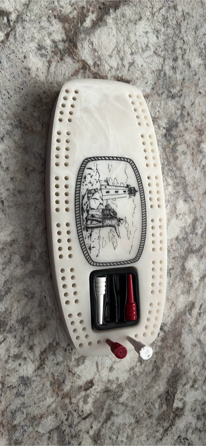 Made of marble like material, this travelling cribbage board was purchased for $12.99 plus tax. Asking $10. Never used. From. Smoke free home.