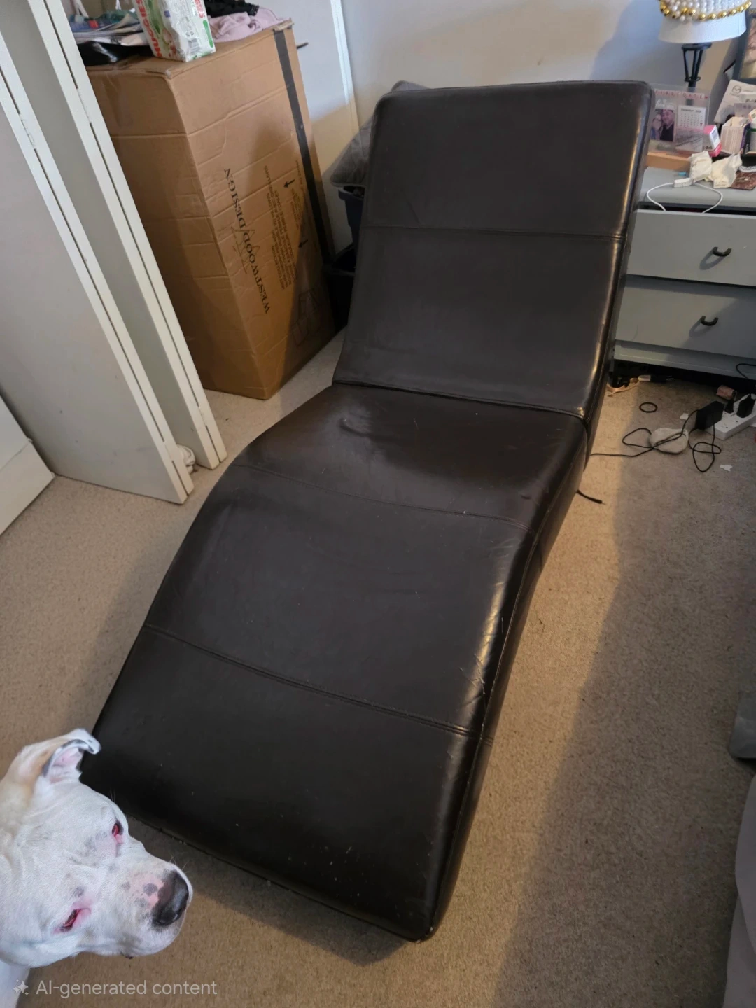 Dark Brown Faux Leather Chaise Lounge