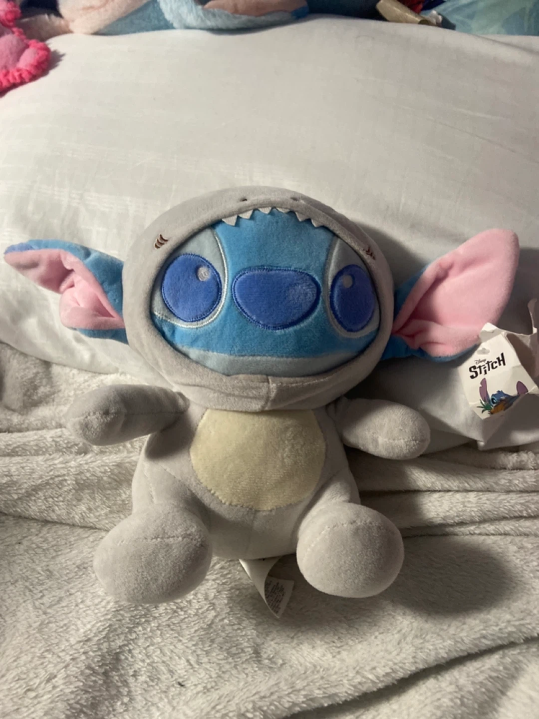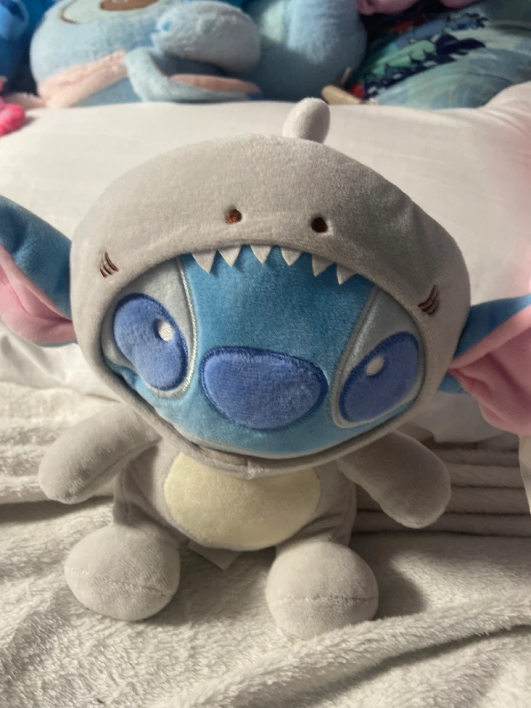 This adorable Disney Stitch plush is dressed up in a cute grey shark costume! It measures 25cm/10in and is in great condition. Perfect for any Stitch fan or plush collector!
