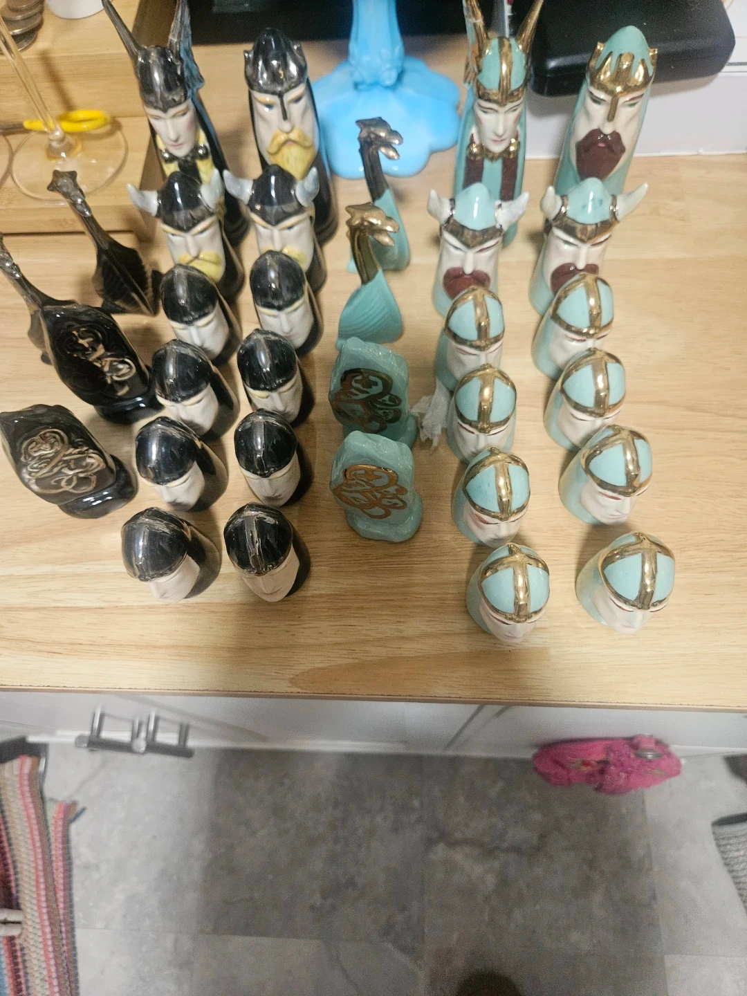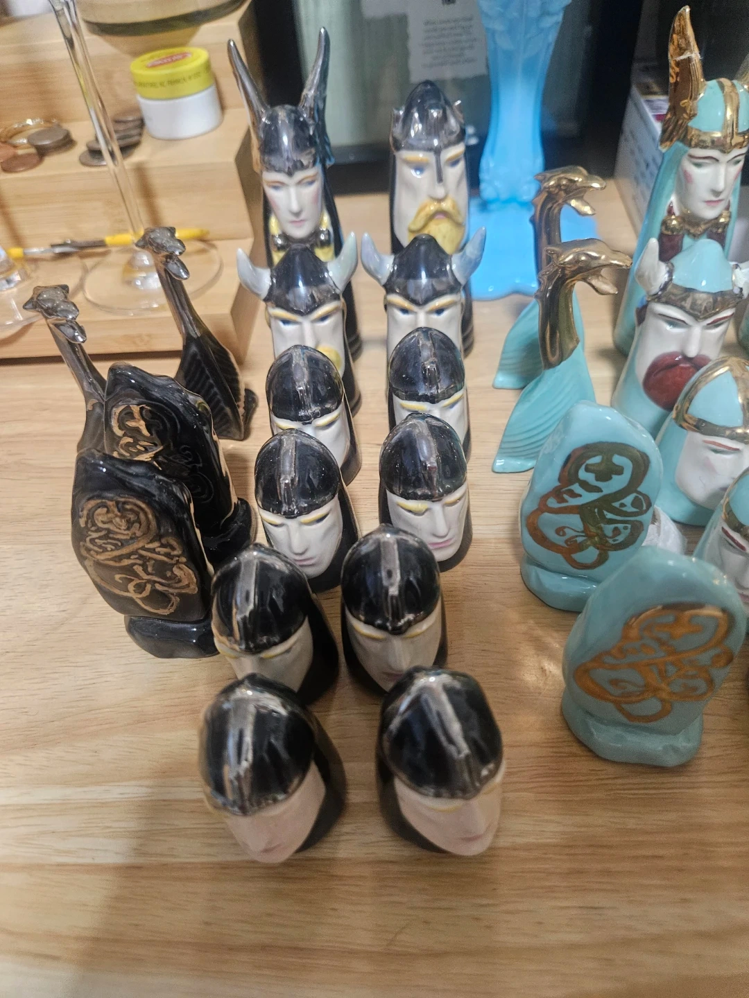 Vintage 50s Ceramic Viking Chess Set 36-Pieces