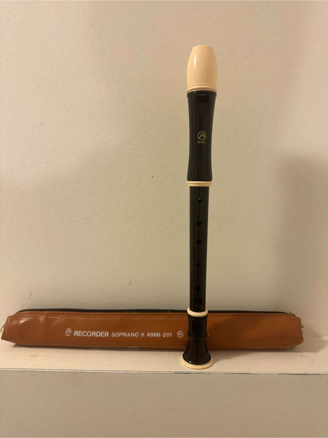 Angel Soprano Recorder ASRB-201 in black with a tan case. Includes original case. Good for beginners learning the recorder!