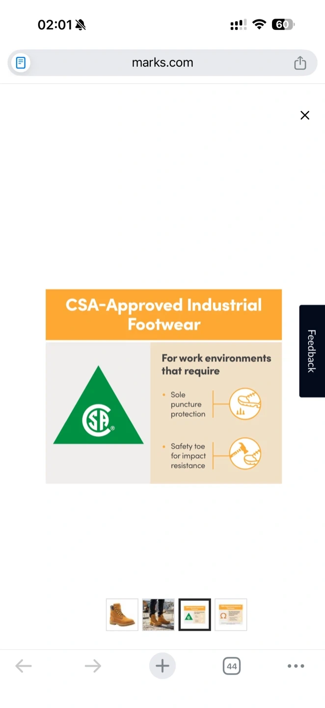 CSA-approved industrial footwear for work environments requiring sole puncture protection and impact resistance. Features electric shock resistant outsoles.