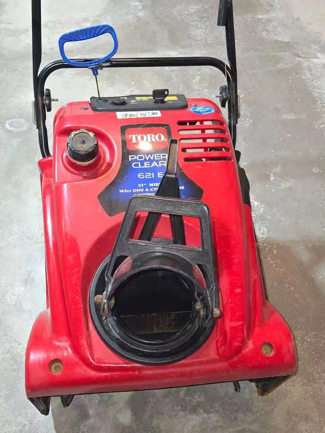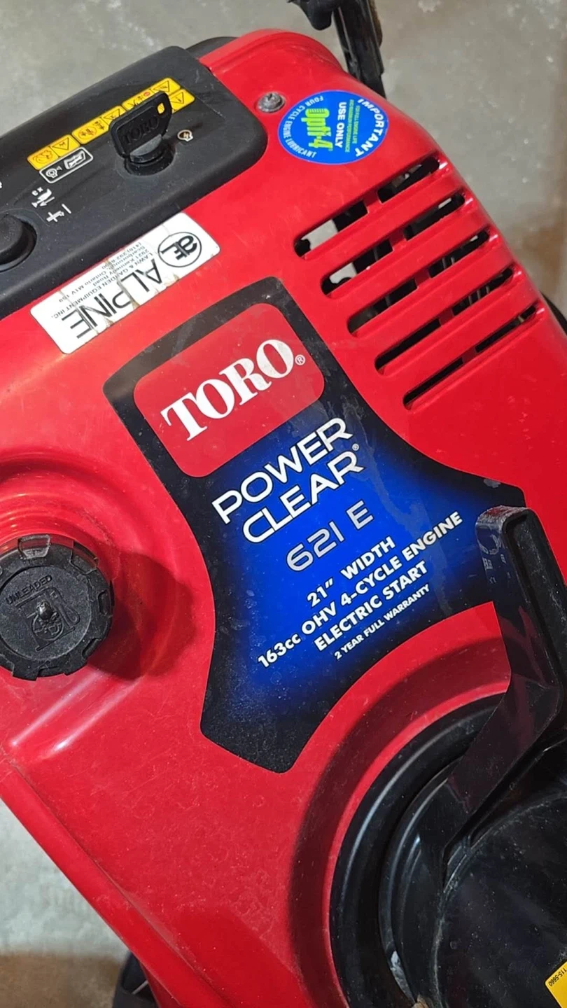 Toro Power Clear 621 E snow blower with a 21" width. It features a 163cc OHV 4-cycle engine and electric start. This snow blower is great for clearing driveways and sidewalks.