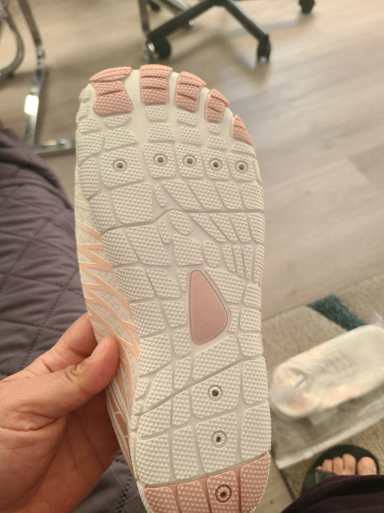 Selling a pair of Vibram FiveFingers V-Aqua barefoot shoes for women. These are designed for use in and around water, making them perfect for activities like kayaking, canoeing, and paddleboarding. The soles are designed for grip and protection while still allowing for a barefoot feel. They're in great condition and ready for your next adventure