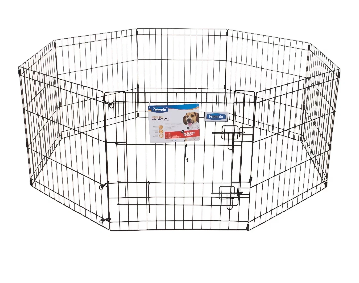 498 panel exercise pen for your furry friend! Each panel is 24 inches wide by 30 inches high (61cm x 76.2cm). Perfect for indoor or outdoor use to keep your pet safe and secure
