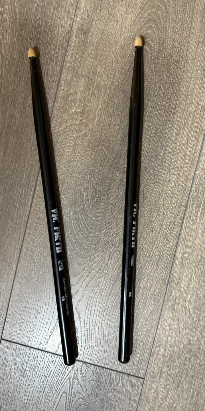 108Selling a pair of Vic Firth American Classic 5B drumsticks! These are made of hickory, which makes them durable and great for drumming