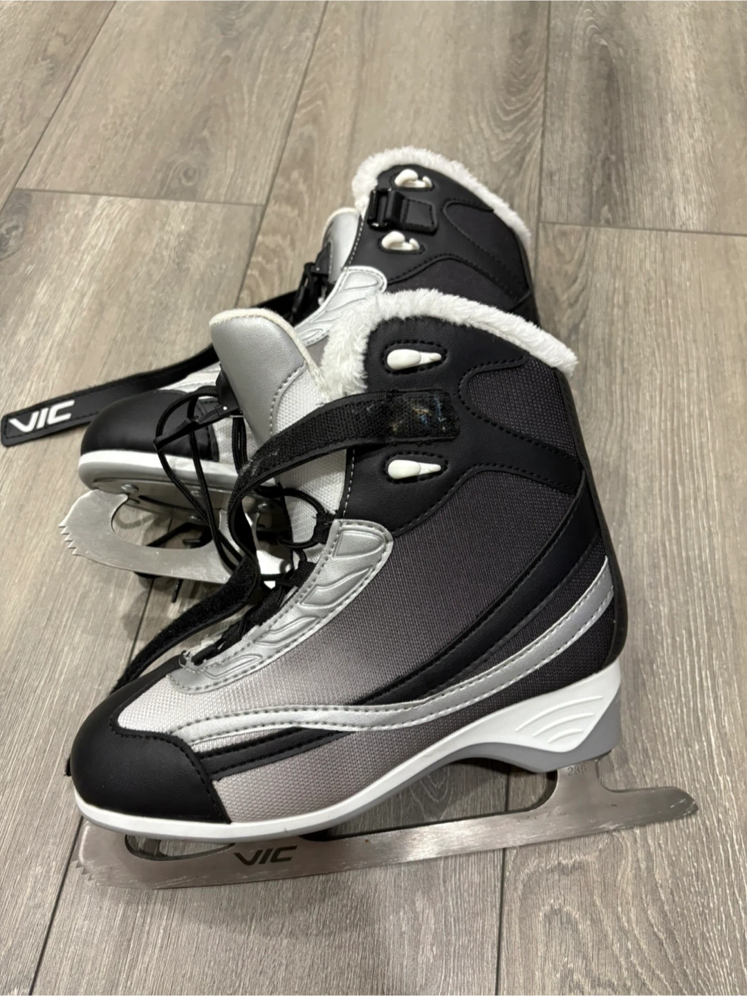 10Selling a pair of VIC ice skates in great condition! They're black and silver, and look like they would be a size 5. Perfect for hitting the rink this winter!