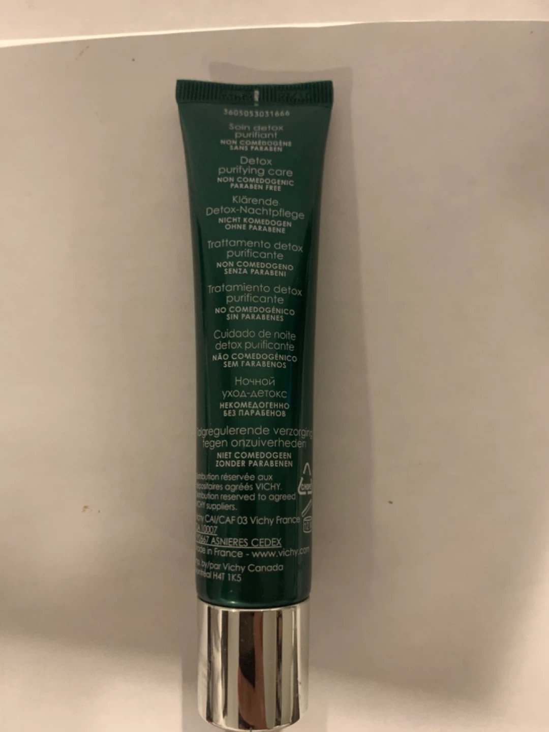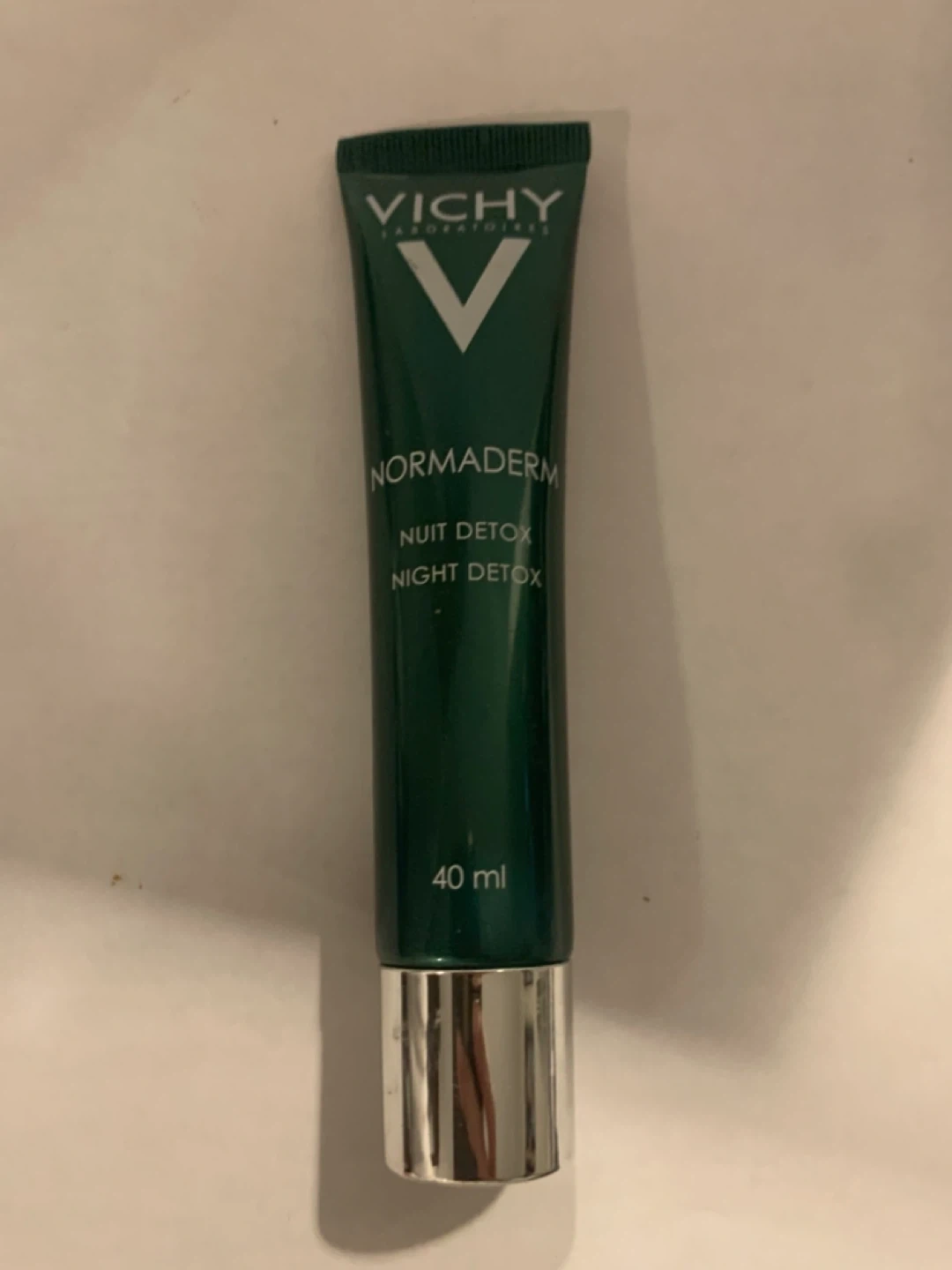 30Selling a Vichy Normaderm Nuit Detox Night Cream in a 40ml tube. It's a detox purifying care product that is non-comedogenic and paraben-free. It helps with detoxifying and purifying the skin overnight. Perfect for a nighttime skincare routine!