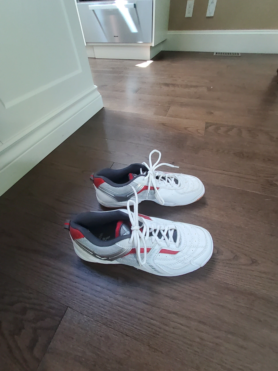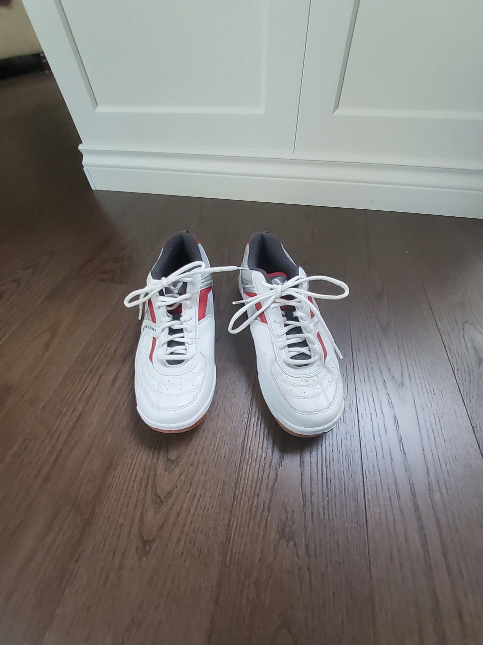 Selling a pair of Victor SH501 D badminton or squash shoes in great condition! They are a size 9 and feature a white, red, and grey colour scheme. Perfect for indoor court sports! Used Once !