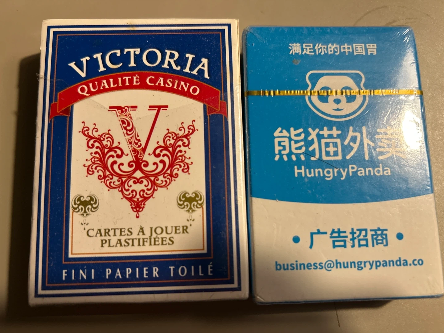 149Two decks of cards for sale! One is a deck of Victoria Casino playing cards, and the other is a deck of Hungry Panda cards