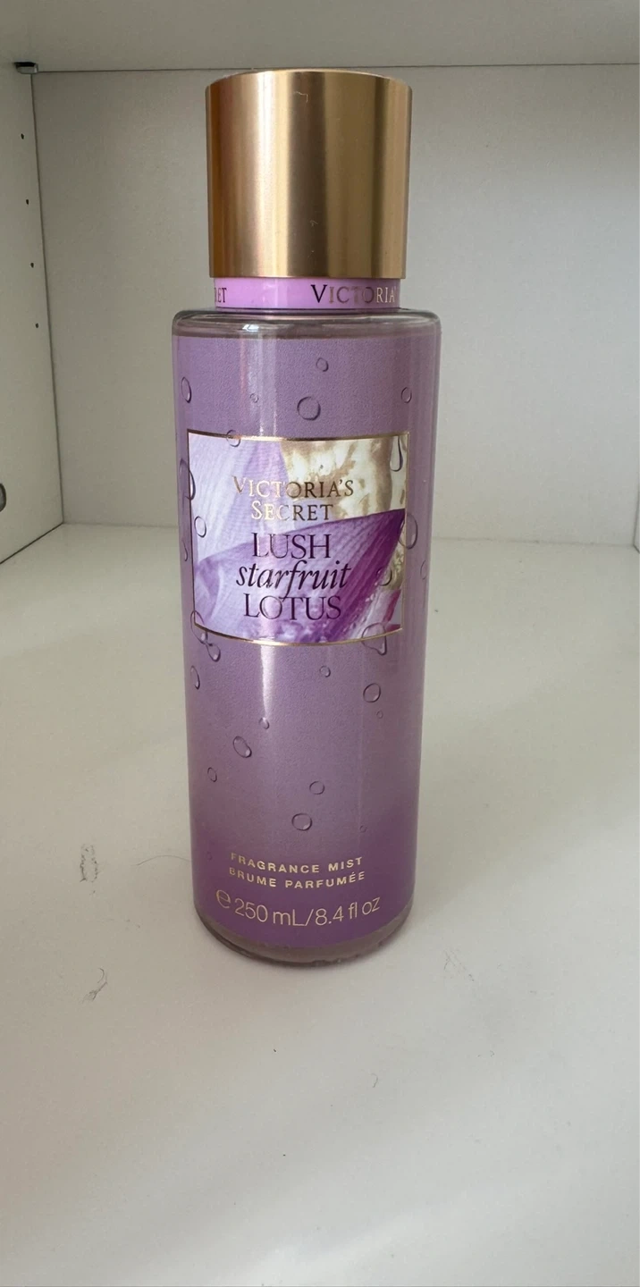 Selling a Victoria's Secret fragrance mist in the Lush Starfruit Lotus scent. It's a light and refreshing fragrance mist. The bottle contains 250 mL / 8.4 fl oz. Only used once or twice.