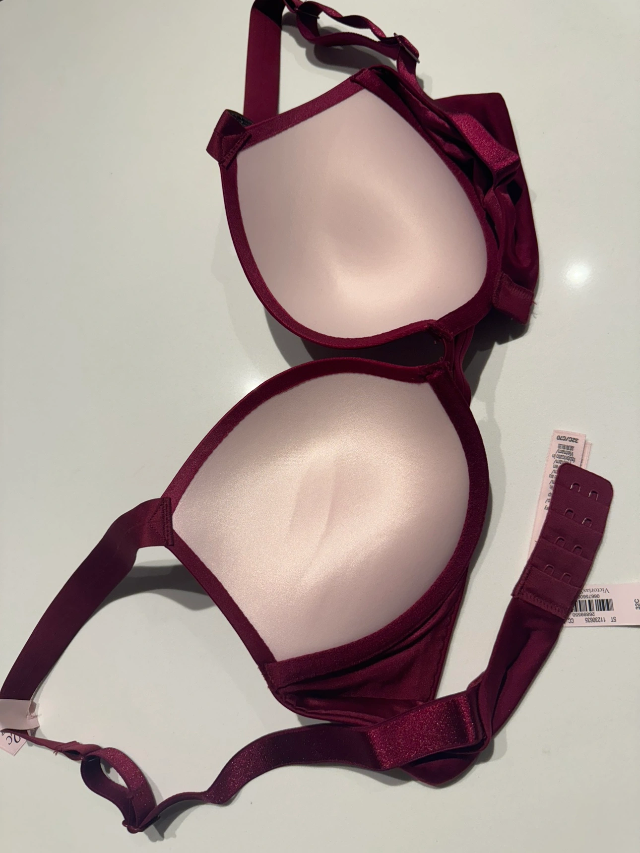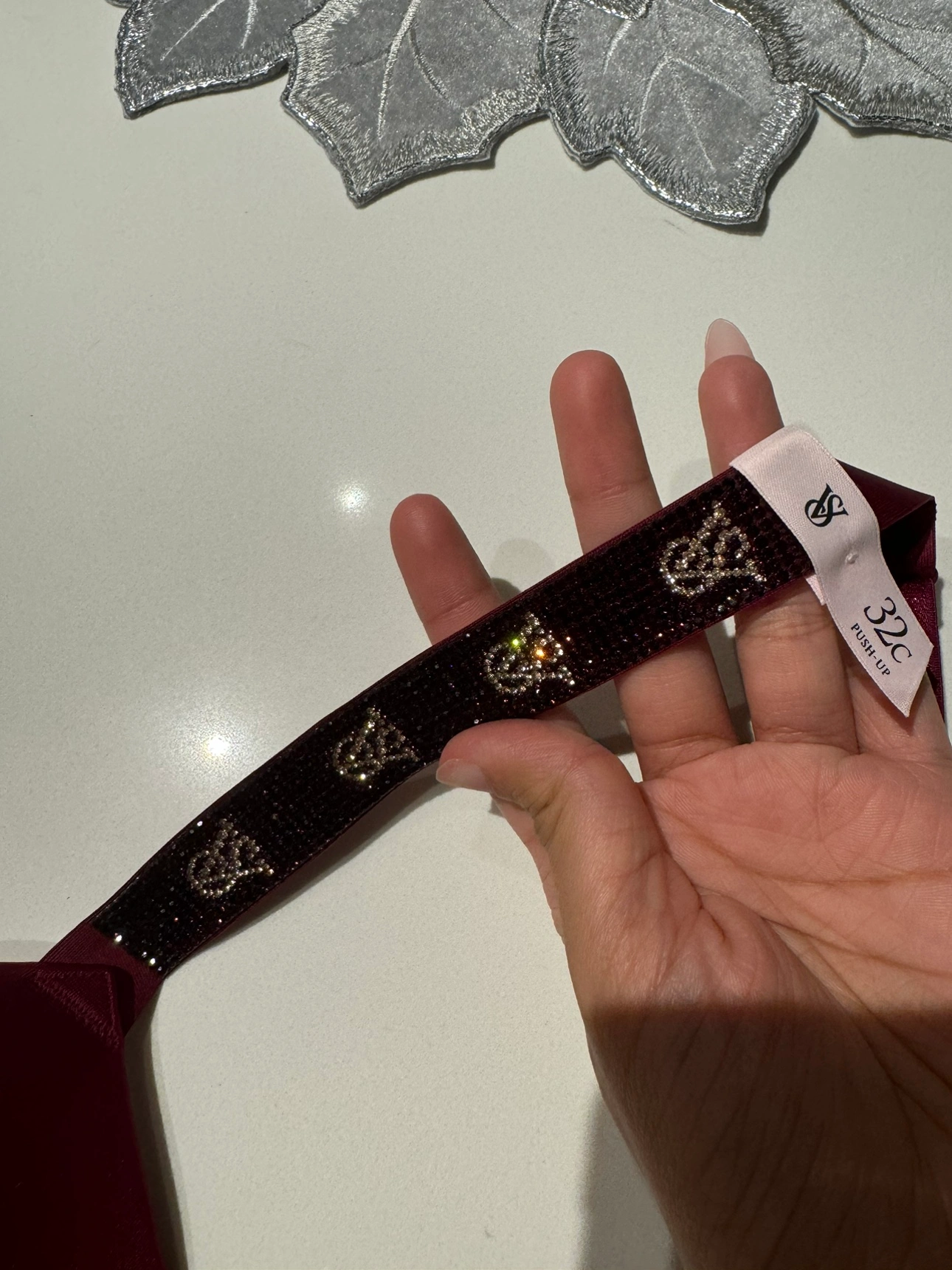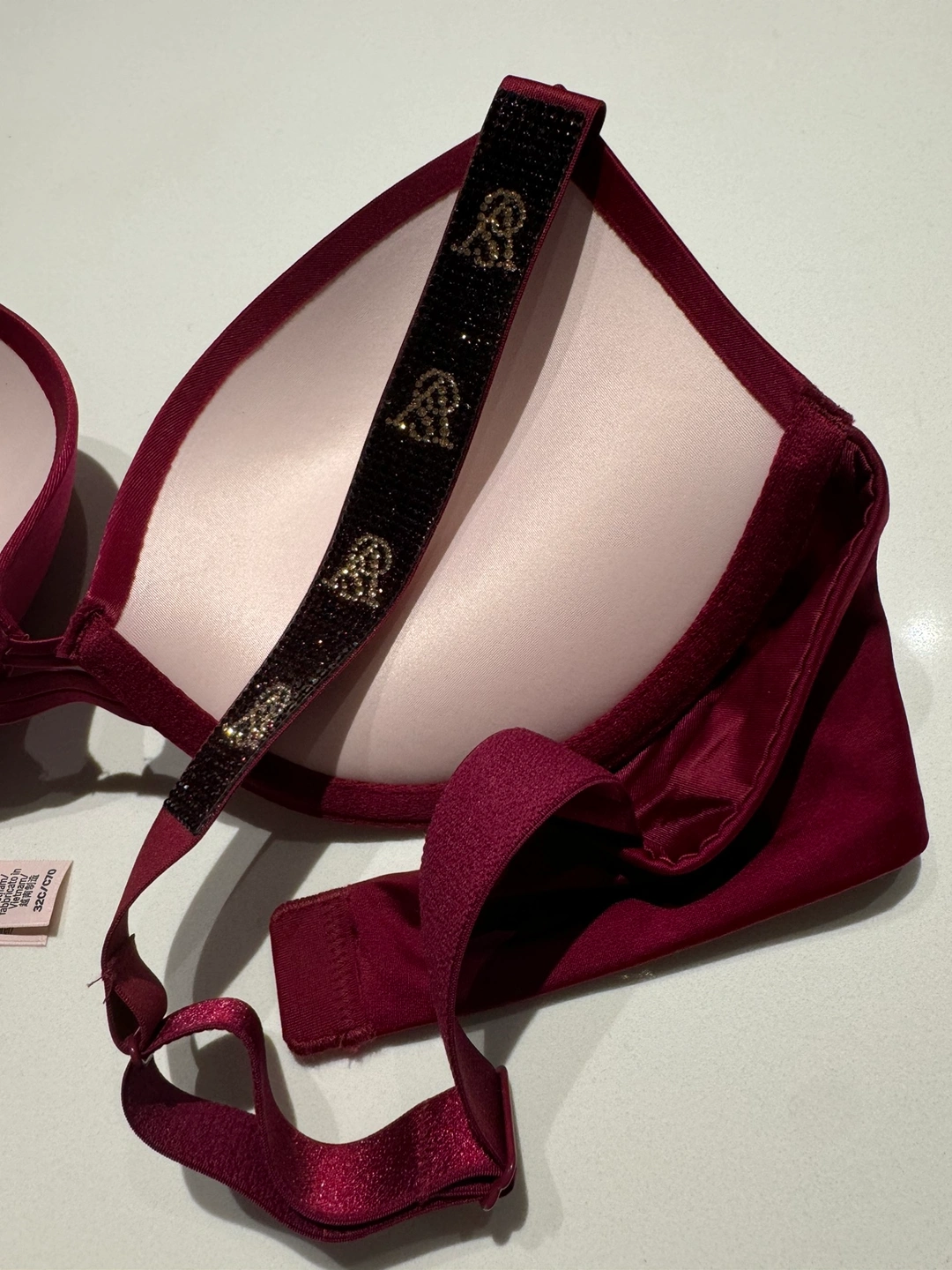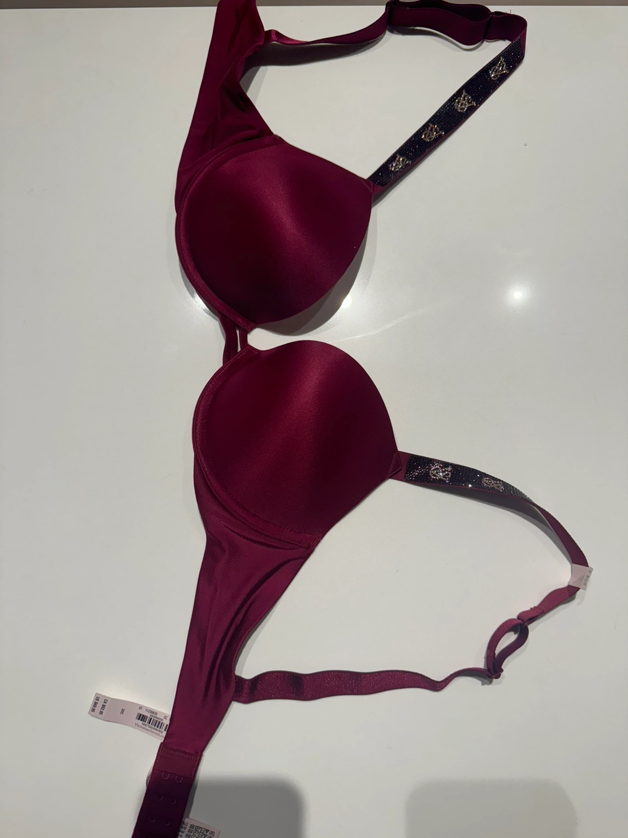 47Burgundy bra with a push-up design, embellished straps, and adjustable back closure. BRAND NEW BRA WITH TAG AND AVAILABLE IN ALL SIZES