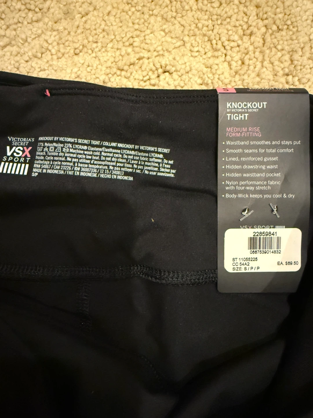 10Selling a pair of Victoria's Secret VSX Knockout Tights in size small! They're a medium rise, form-fitting style. Features include: - Waistband that stays put - Smooth seams - Reinforced gusset - Hidden drawstring waist - Nylon performance fabric with four-way stretch - Body-wick material to keep you cool and dry Originally bought for $69.50