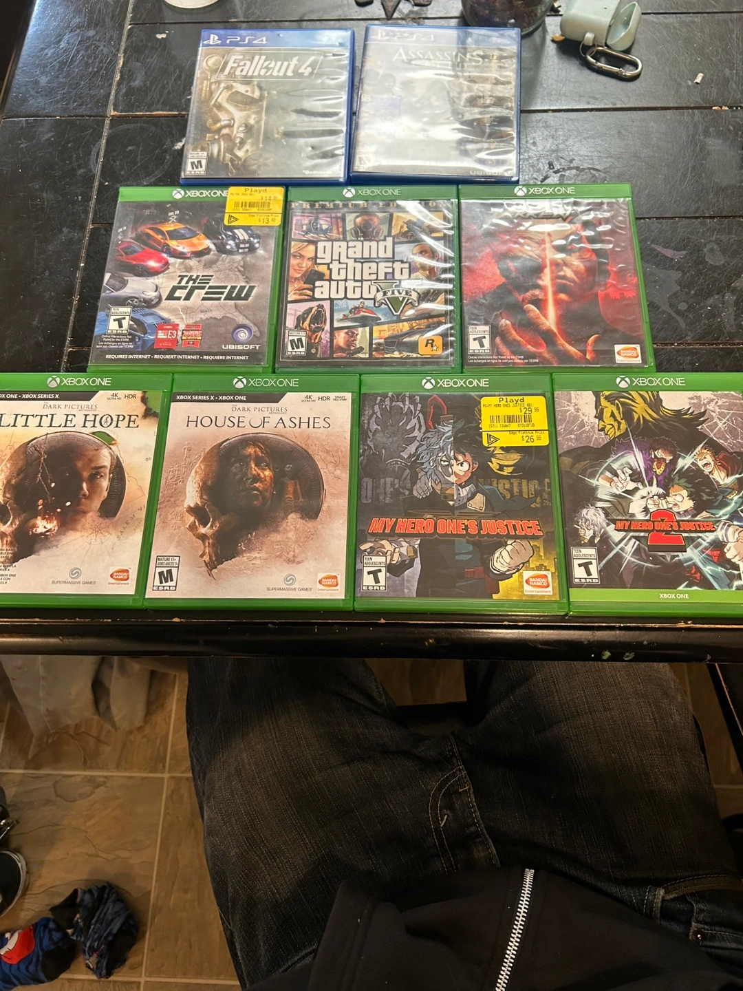 15Ps4 and xbox one games Fallout 4 Assassins creed syndicate The crew Gta 5 Tekken 7 Dark pictures house of ashes and little hope My hero ones justice 1 and 2