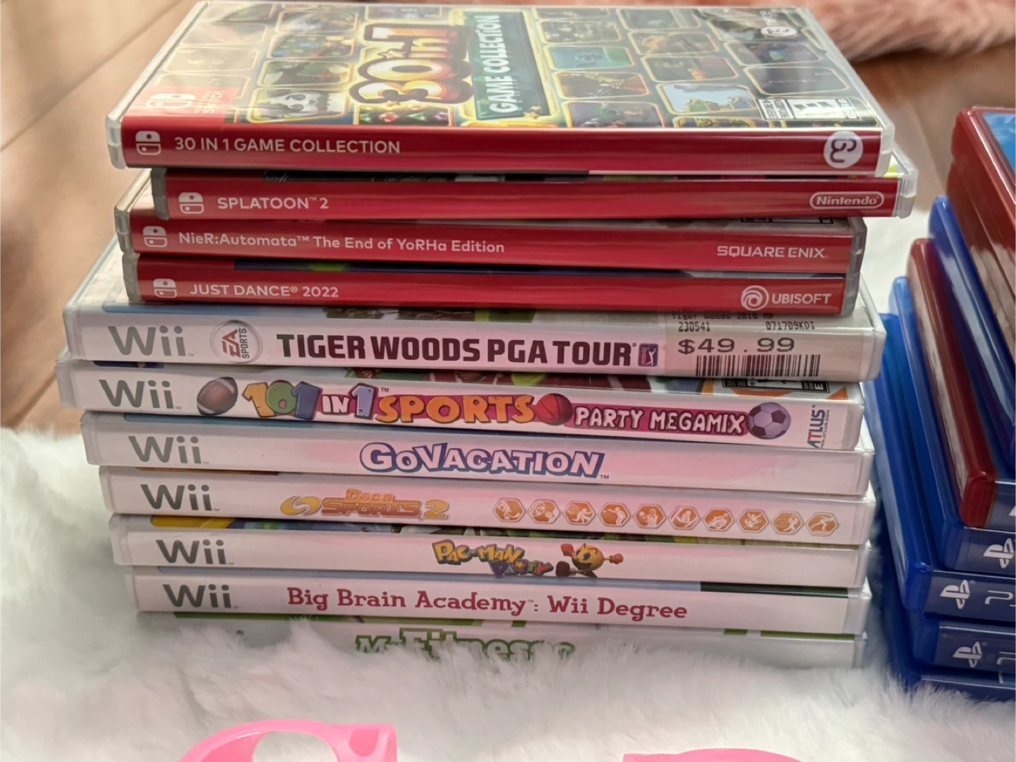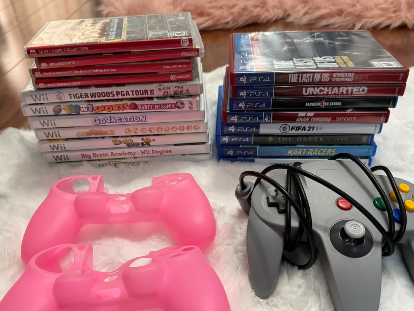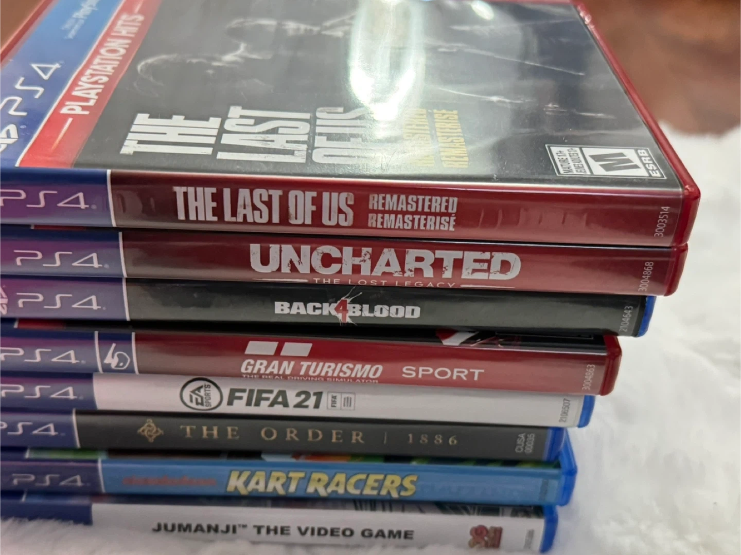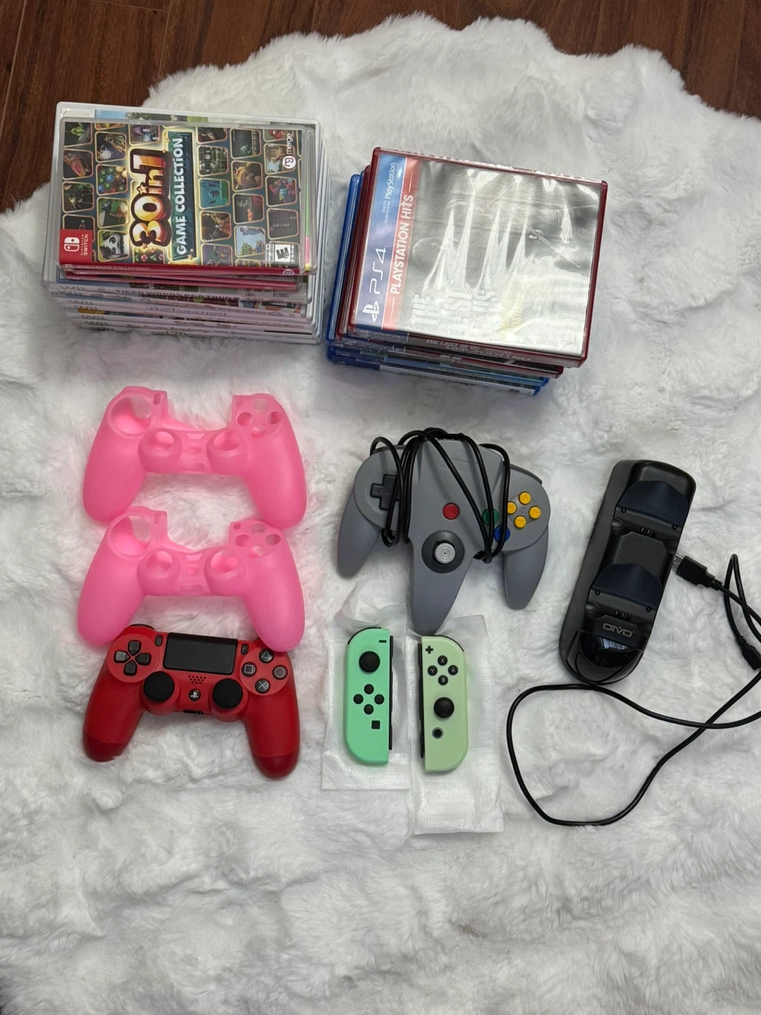 Multiple Games & Accessories for Sale! Condition is excellent for switch, ps4 games and accessories. Wii games are in good condition. Buy as a bundle and get a better deal than to buy separately. Games: Switch - 30 in 1 Game Collection $34 - Splatoon $17 - NieR: Automata: The End of YoRHa Edition $44 - Just Dance 2022 $18 PS4 - The Last of Us Remastered $15 - Uncharted: The Lost Legacy $12 - Back 4 Blood $11 - Gran Turismo SPORT $16 (UNAVAILABLE) - FIFA 21 $12 (SOLD) - The Order 1886 $18 - Nickelodeon Kart Racers $13 - Jumanji: The Video Game $8 Wii - Tiger Woods PGA Tour 10 $9 - 101 in 1 Sports Party Megamix $20 - Go Vacation $20 - Deca Sports 2 $11 - Pac-Man Party $15 - Big Brain Academy: Wii Degree $6 - My Fitness Coach $9 Accessories: - Red PS4 Dual Shock Controller $50 - PS4 2-Controller Charging Dock $10 (SOLD) - Nintendo 64 3rd Party Gray Controller $10 - 1 Green and Purple Switch Controllers $36
