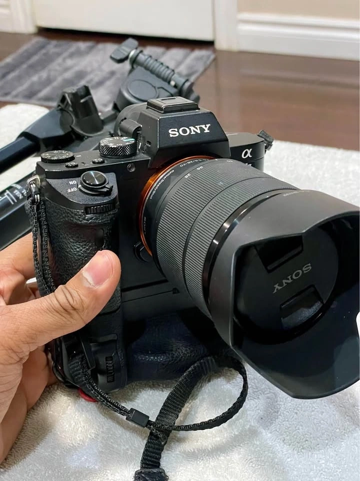 Full frame mirrorless camera and lens combo, great for portraits. Comes with the Sony FE 28-70mm f/3.5-5.6 OSS zoom lens, camera body, one battery, and charger. This professional full frame camera has built-in image stabilization and a weatherproof body. Let me know if you're interested!