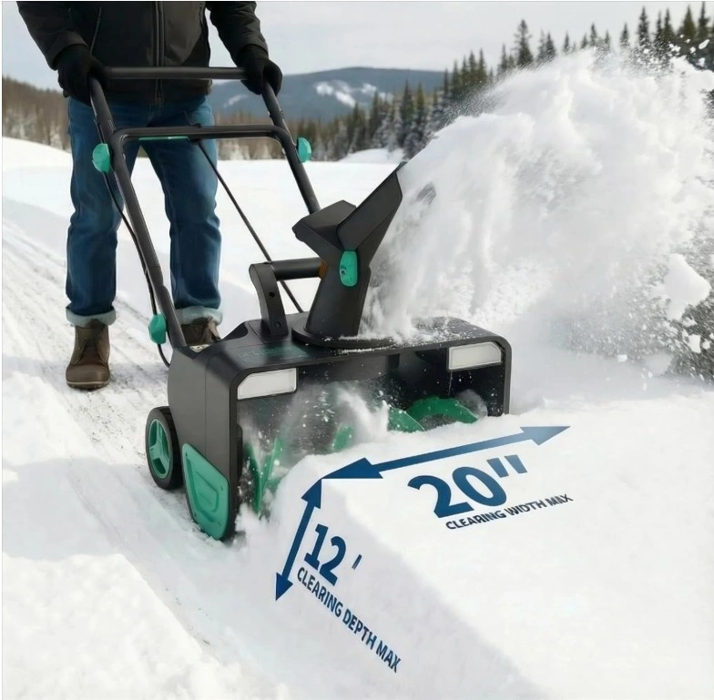 Powerful 40V Brushless Motor - Tackle heavy snow with ease. The high-efficiency brushless motor delivers robust performance, clearing a wide 20-inch path and cutting through up to 12-inch depths in a single pass. Clearing heavy, wet snow and throws. Extended Runtime with Dual Batteries - Equipped with two 20V lithium batteries (40V total), this snow blower provides ample power to clear a 6-8 car driveway on a single charge. Precision Control & Throwing Power - Direct snow exactly where you want it with the 180-degree rotating chute, achieving an impressive throwing distance of up to 25 feet for fast, efficient cleanup. Enhanced Visibility for Night Operation - Dual bright LED headlights illuminate your path, allowing you to clear snow safely in early mornings or late evenings. Engineered for Heavy-Duty Use - Designed for reliability and performance, this snow blower combines powerful clearing capability with user-friendly features to make winter cleanup quick and effortless. Let me know if you're interested!
