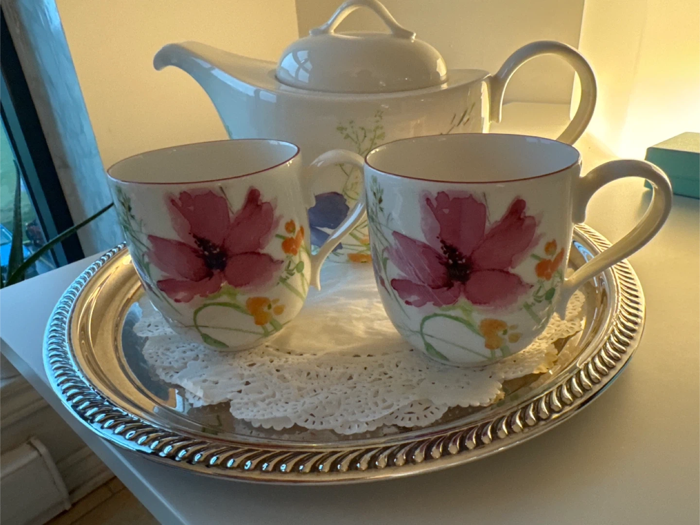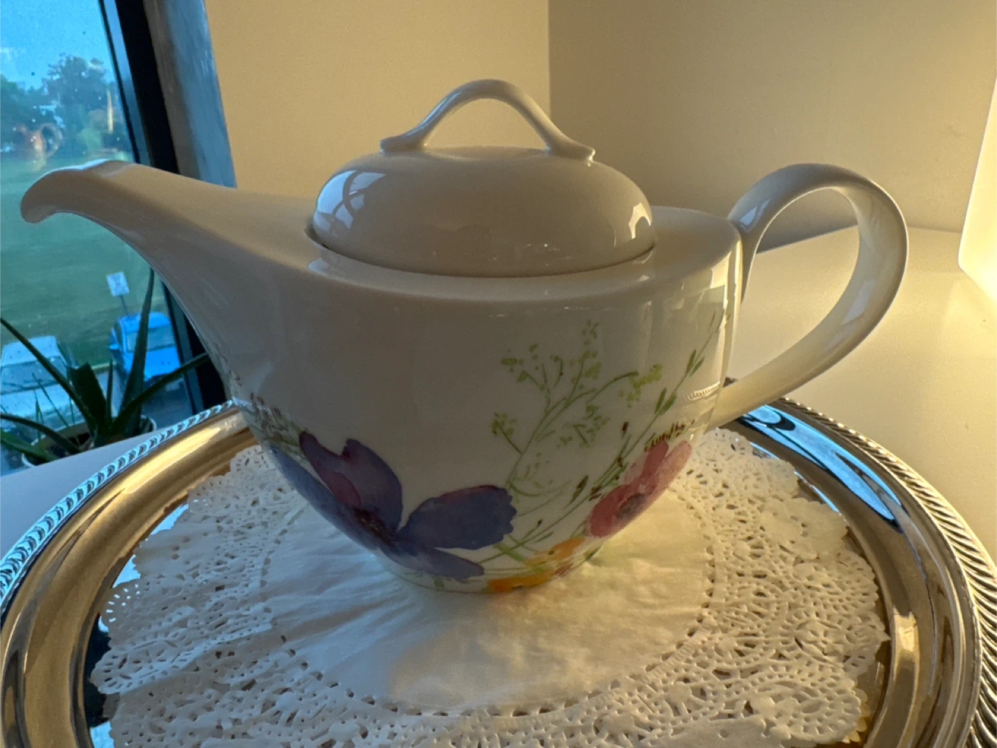 Villeroy & Boch Floral Teapot with Lid with two matching cups