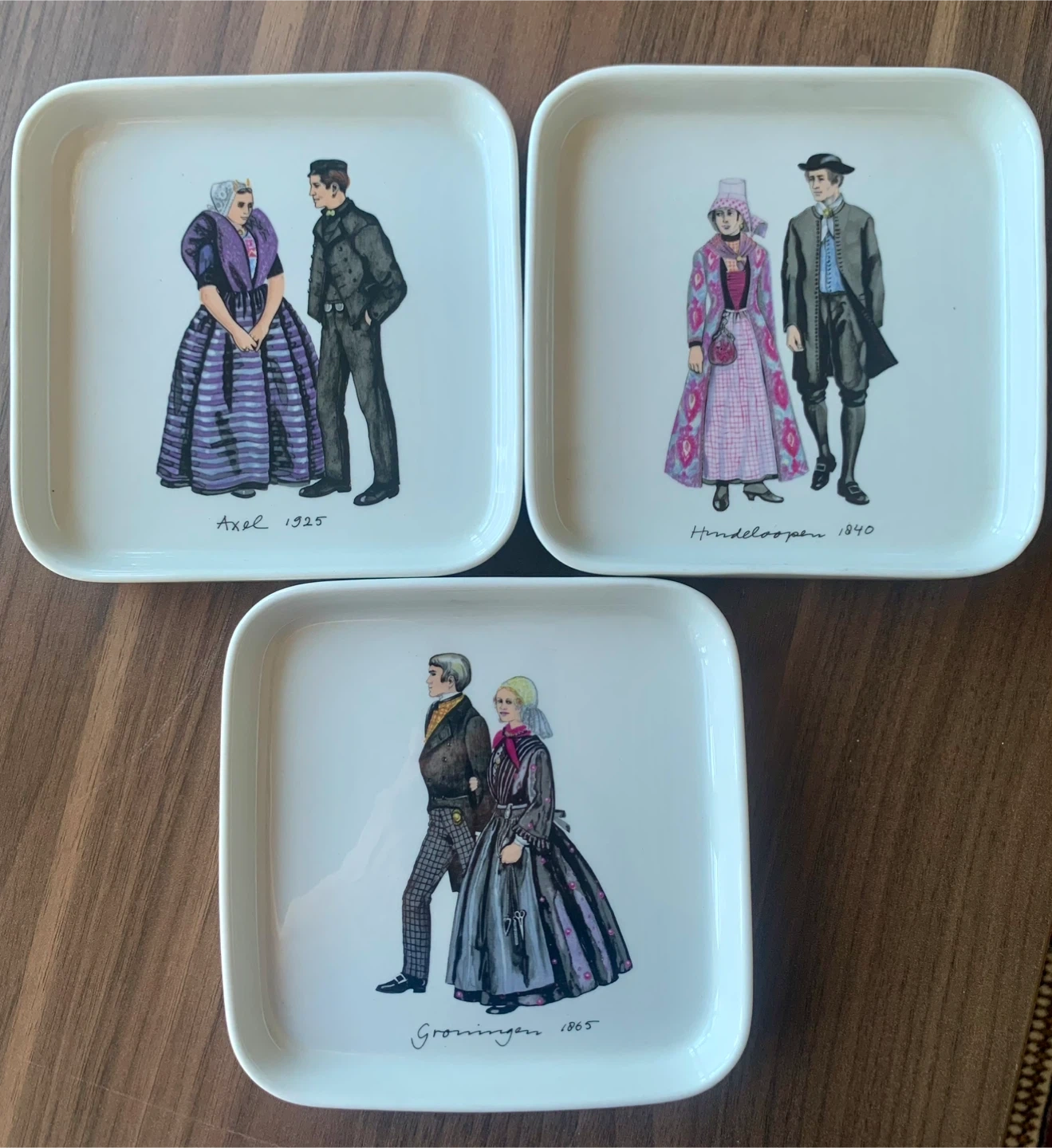 Here's a set of three Villeroy & Boch plates from the Folklore series. Each plate features a different traditional costume design and the name of a European/Dutch town with a year: Axel 1925, Hindeloopen 1840, and Groningen 1865. Great for collectors or anyone who appreciates folk art! Willing to sell separately.