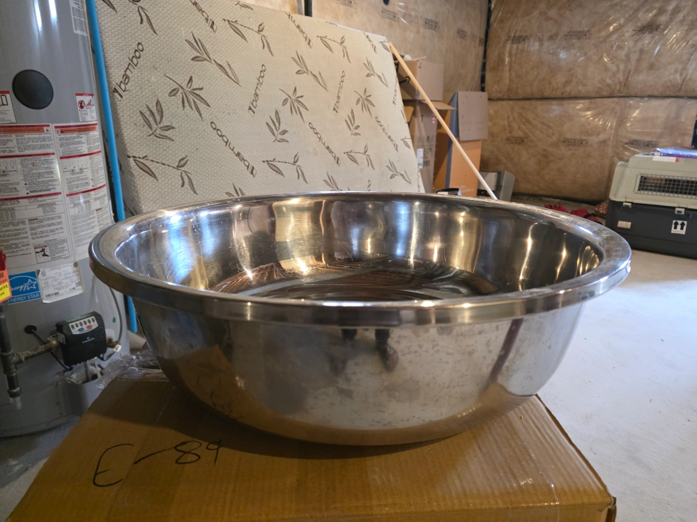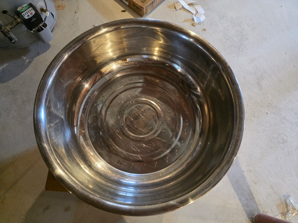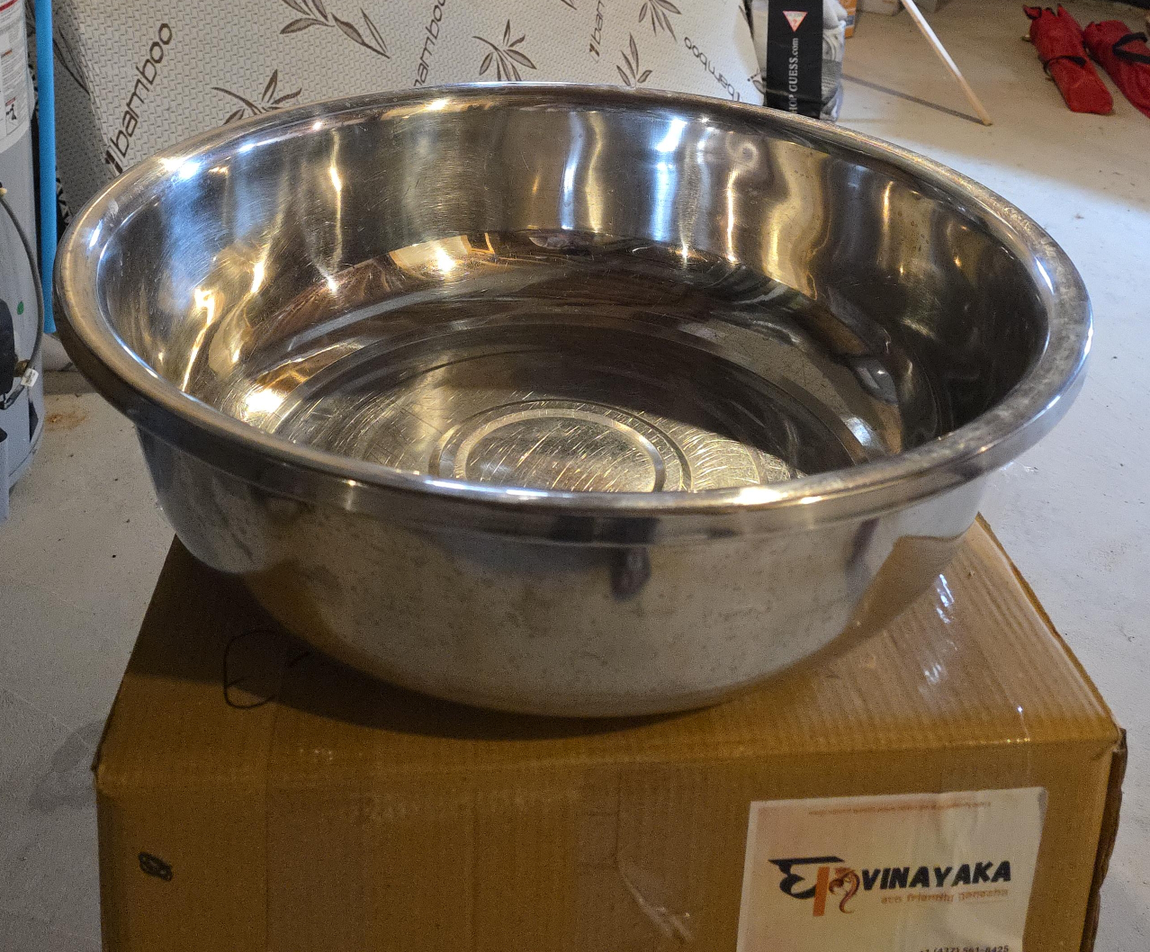 Selling a stainless steel mixing bowl. It's in good condition and ready for all your baking and cooking needs! Great for mixing ingredients. its a really big bowl almost 20-30 liters capacity.