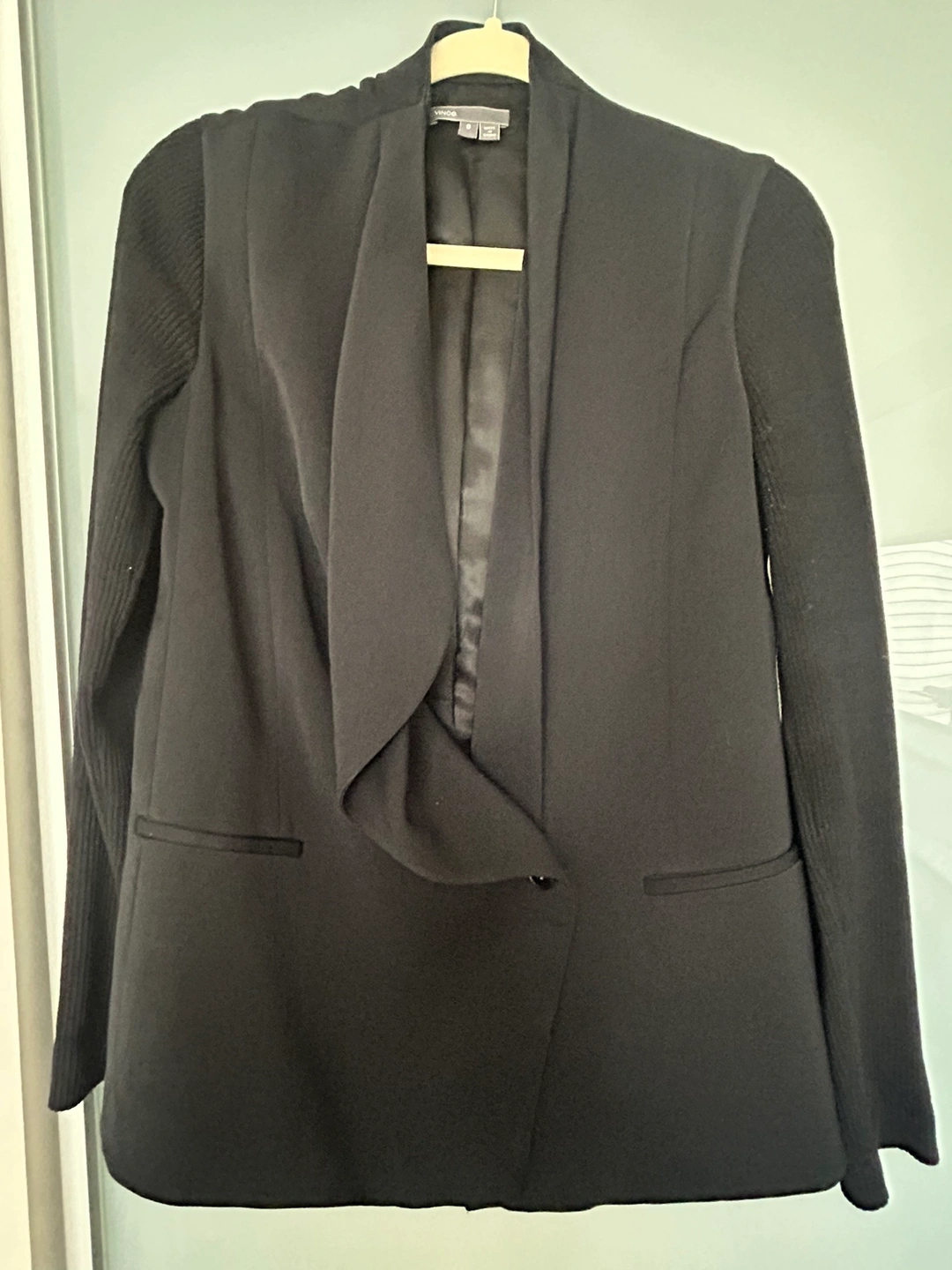 10Black blazer with a shawl collar and knitted sleeves. Size 6 Great for travel.