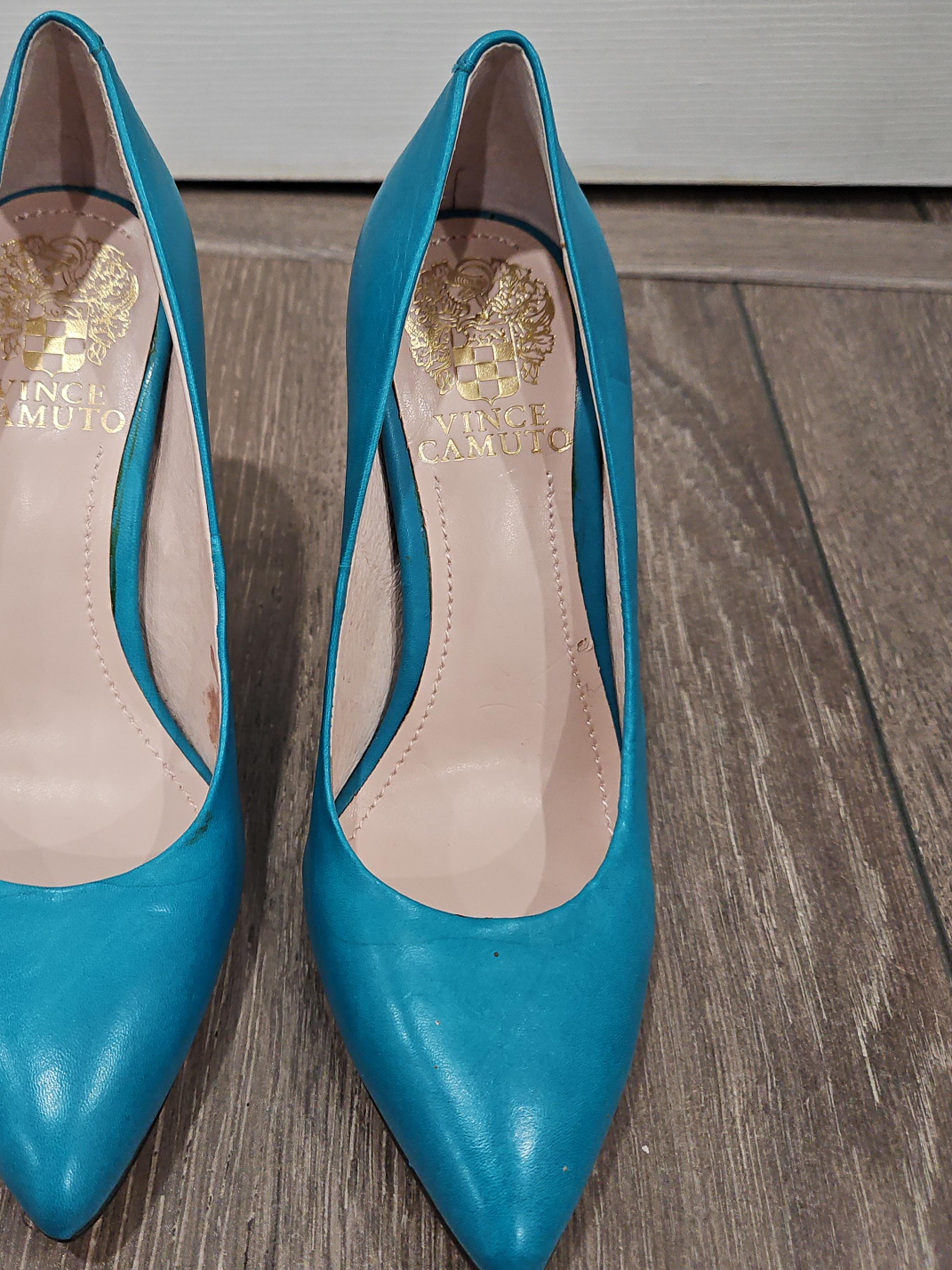 These are a pair of Vince Camuto heels in a vibrant blue colour. They are made of leather and are a size 4. Perfect for adding a pop of colour to your outfit! Public Meet at Weston Road and Major Mackenzie
