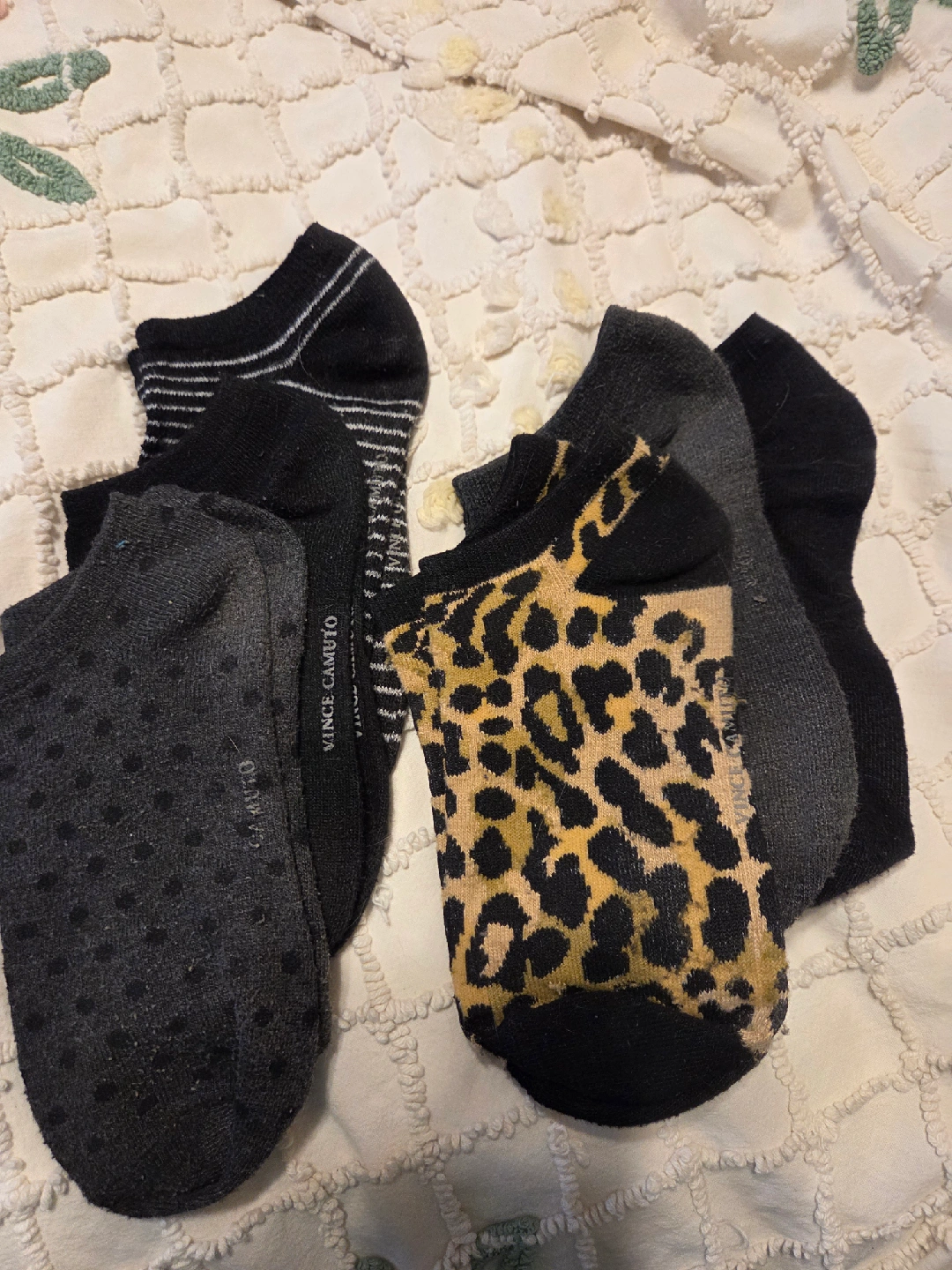 A collection of Vince Camuto socks! There are a variety of styles and patterns. Great for adding a little flair to your everyday outfits!