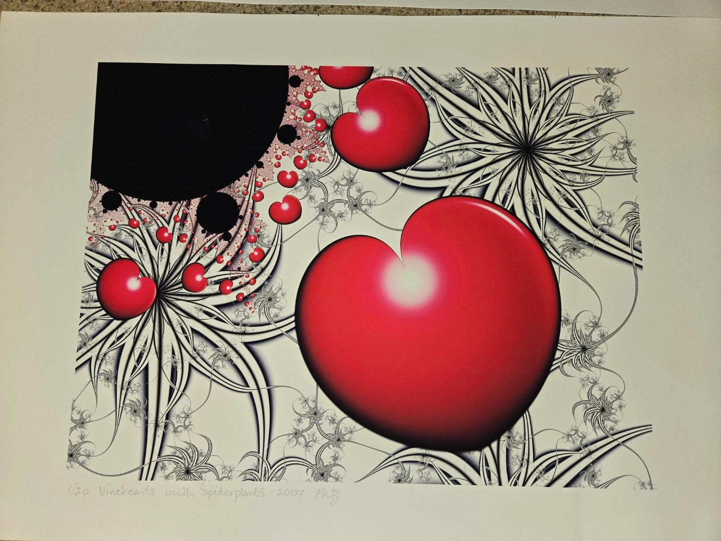 56This is a print titled "Vinhearts with Spiderplants" from 2007. It's number 1 of 20.
