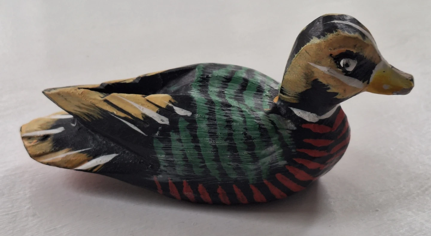 Vinrage Hand Carved and Hand Painted Wooden Duck Figurine